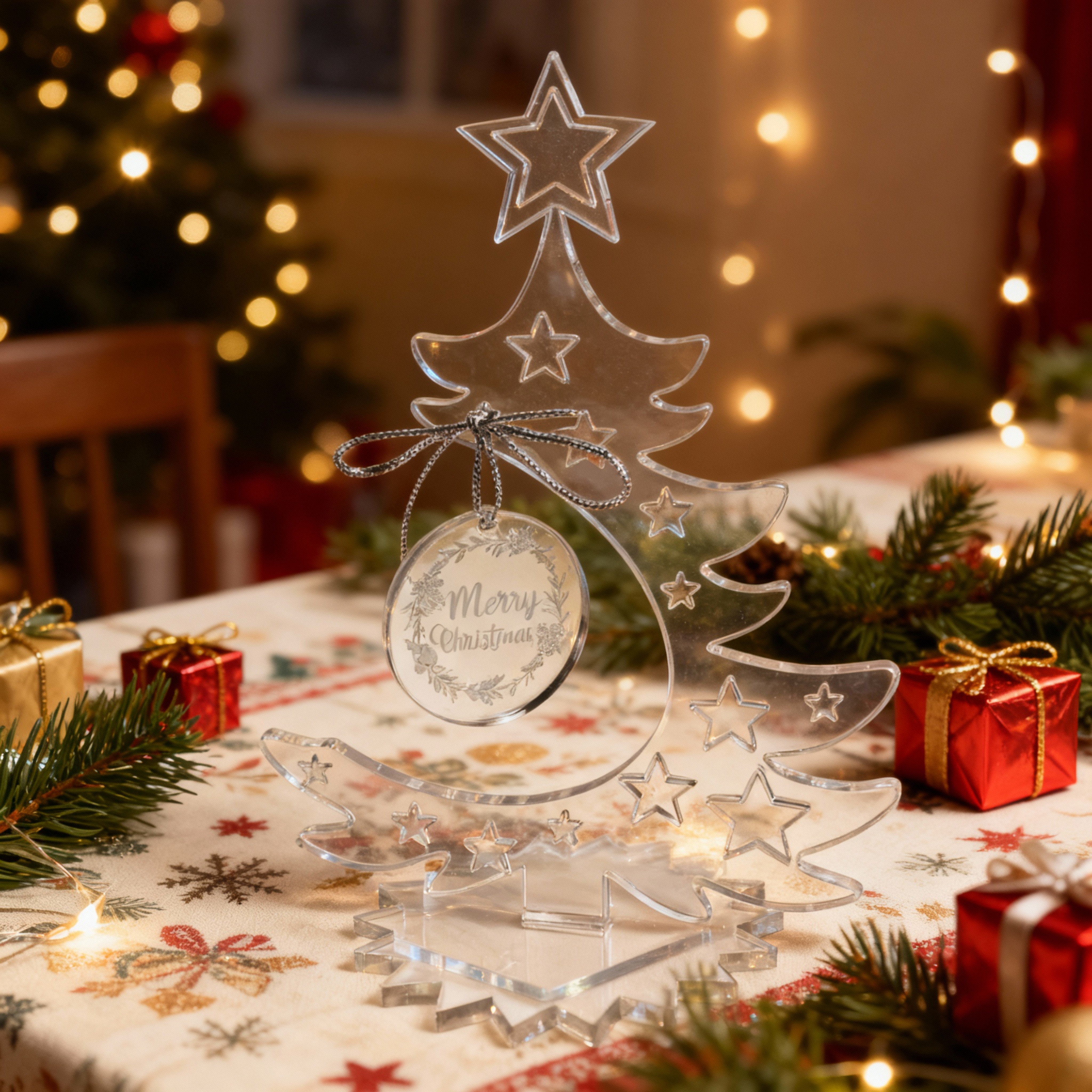 Setze mit diesem Acrylic Tree Sign einen glanzvollen Akzent und bringe die besondere Atmosphäre von Weihnachten in dein Zuhause – dezent, modern und festlich zugleich.