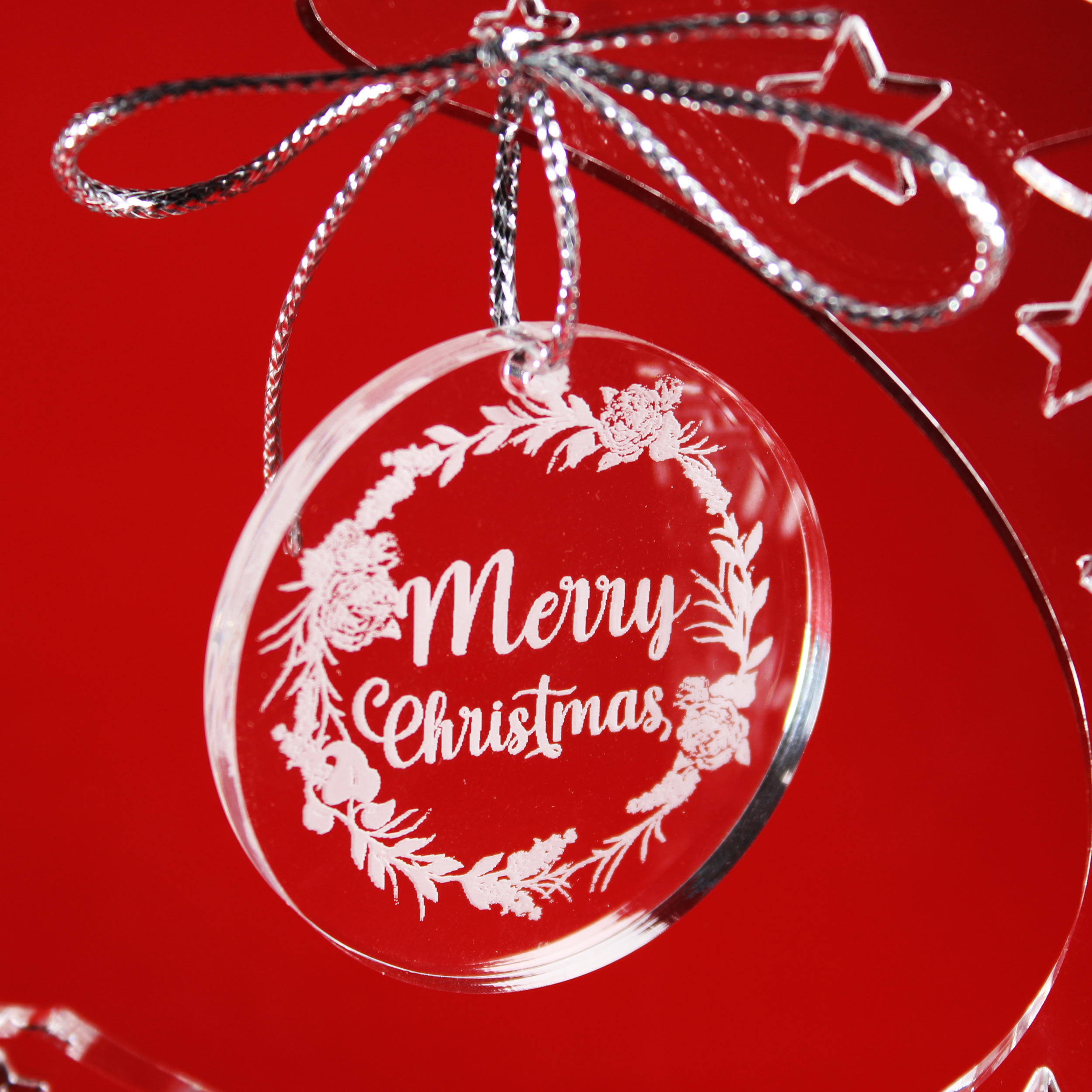 - Anhänger mit Gravur Merry Christmas – Mit dekorativem Anhänger aus Acryl, fein graviert mit der Aufschrift „Merry Christmas“. Ein festliches Highlight in jeder Weihnachts Dekoration.