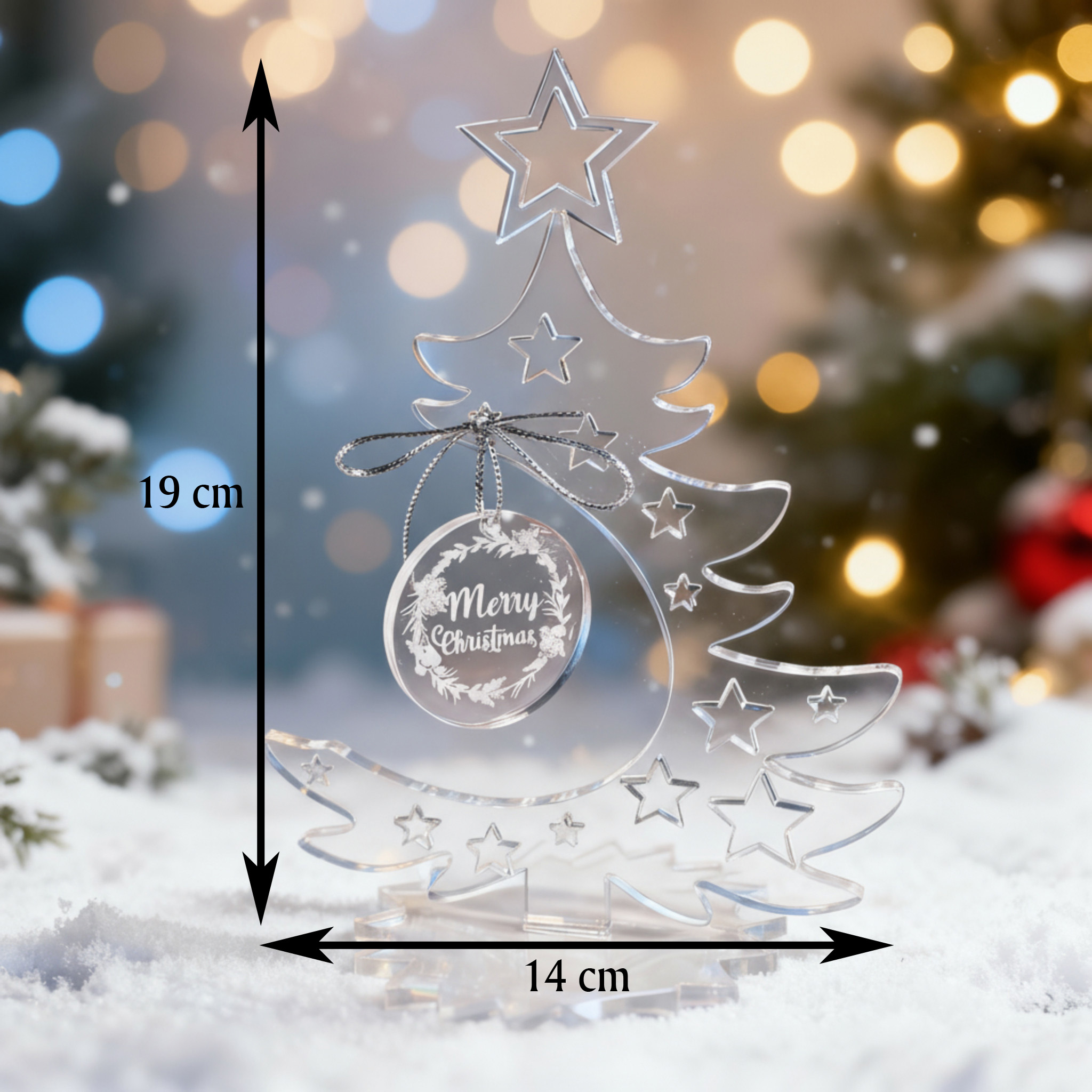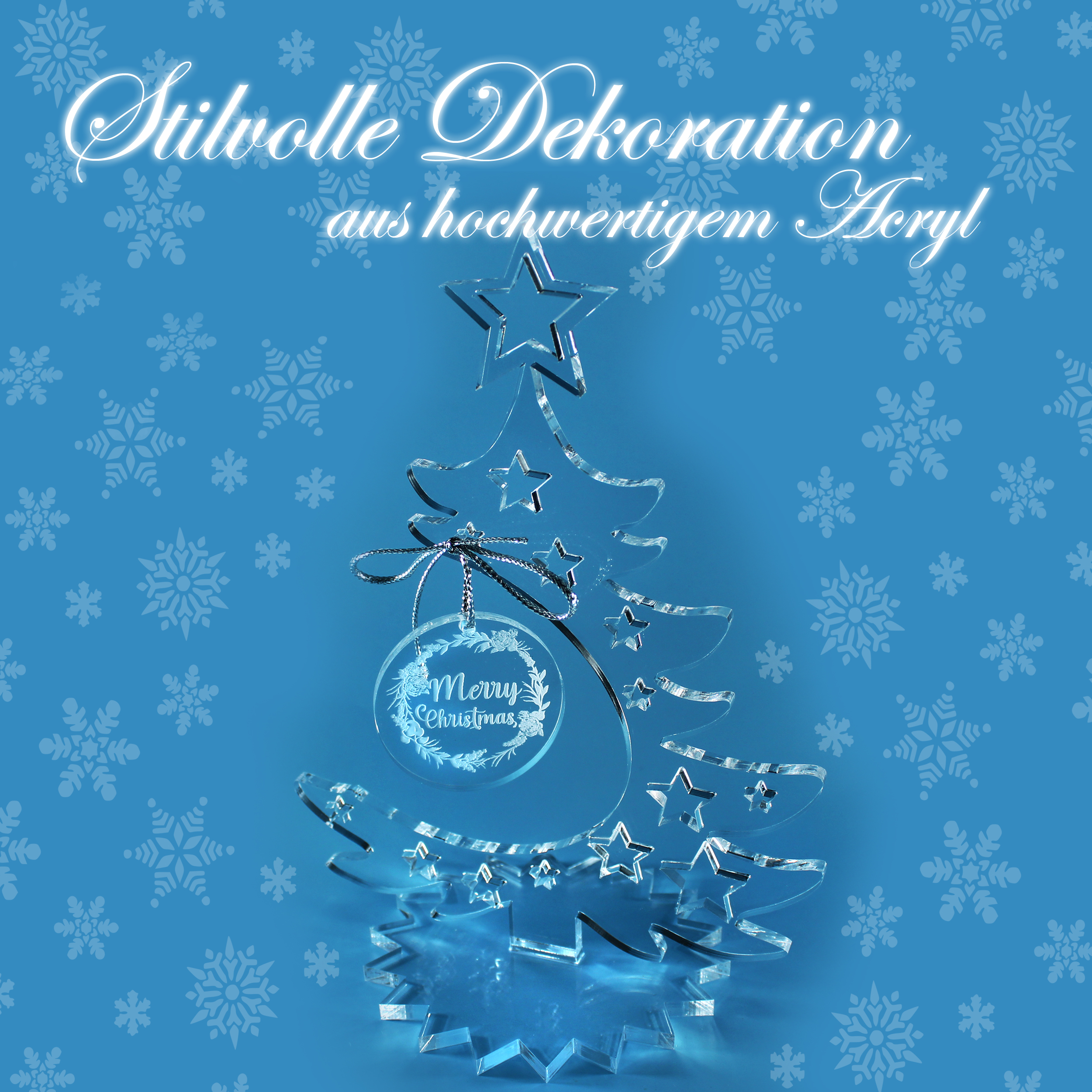 Der elegante Anhänger mit der Gravur Merry Christmas rundet das Design perfekt ab und sorgt für eine edle, festliche Note. Dank des minimalistischen, skandinavischen Designs fügt sich der Acrylbaum harmonisch in moderne und klassische Einrichtungen ein – ob im Wohnzimmer, Büro, in der Küche oder auf dem Schreibtisch.