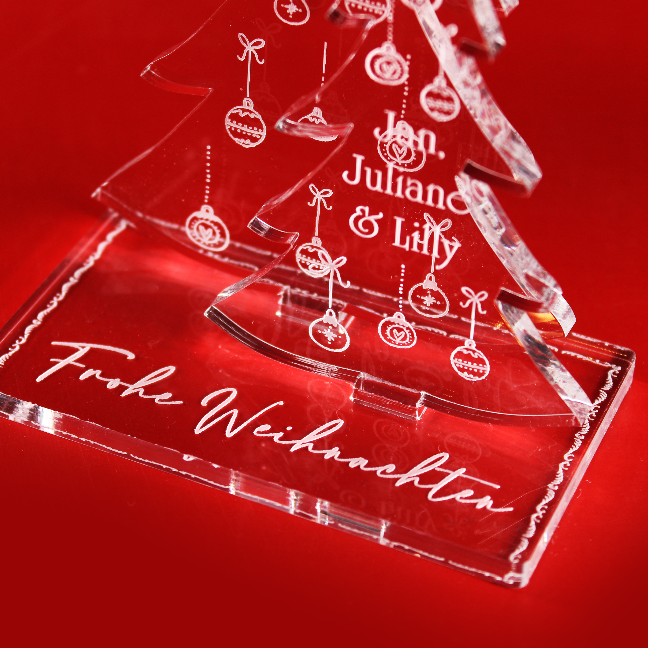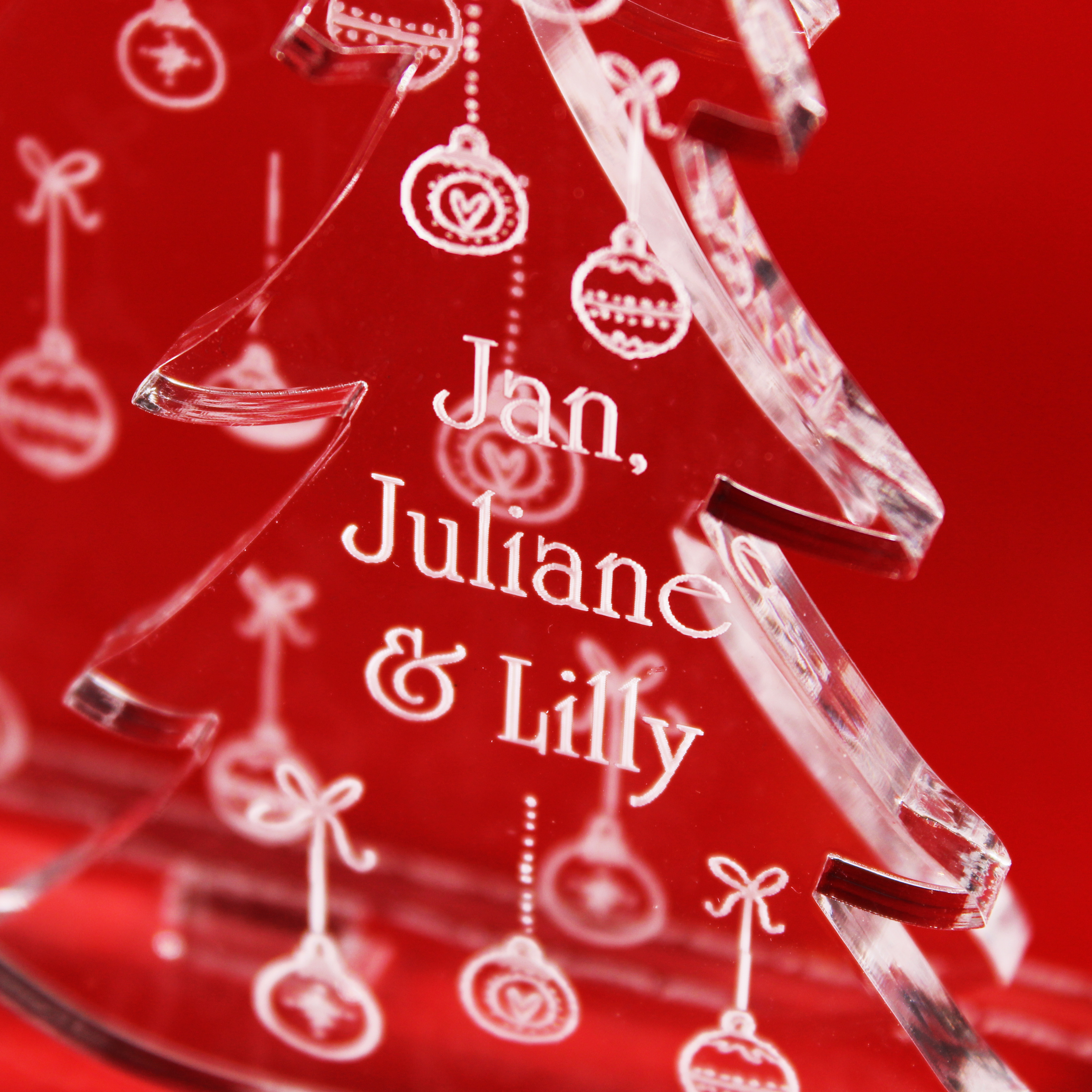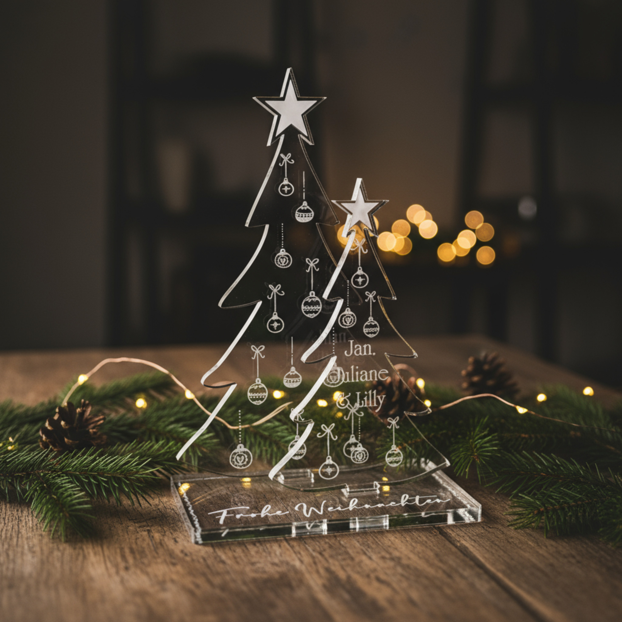 Einzigartige Geschenkidee – Individuell gestaltbares Weihnachts Ornament für Familie, Eltern oder Partner. Hochwertiges Acrylic Sign mit personalisiertem Motivbaum – ein edles Highlight der Weihnachtszeit
