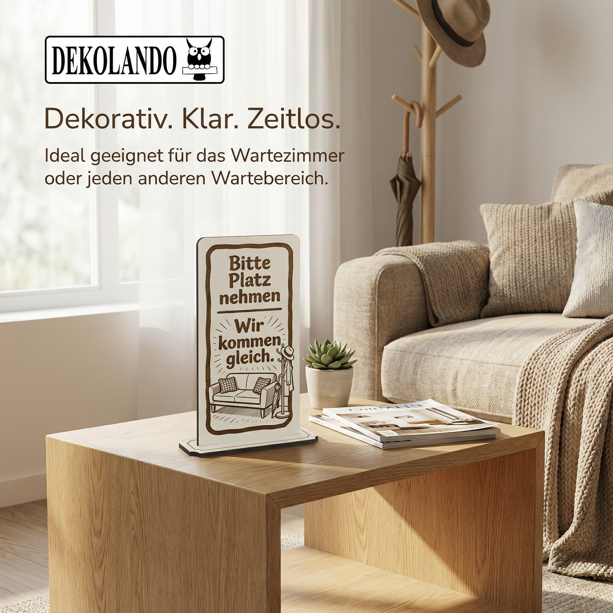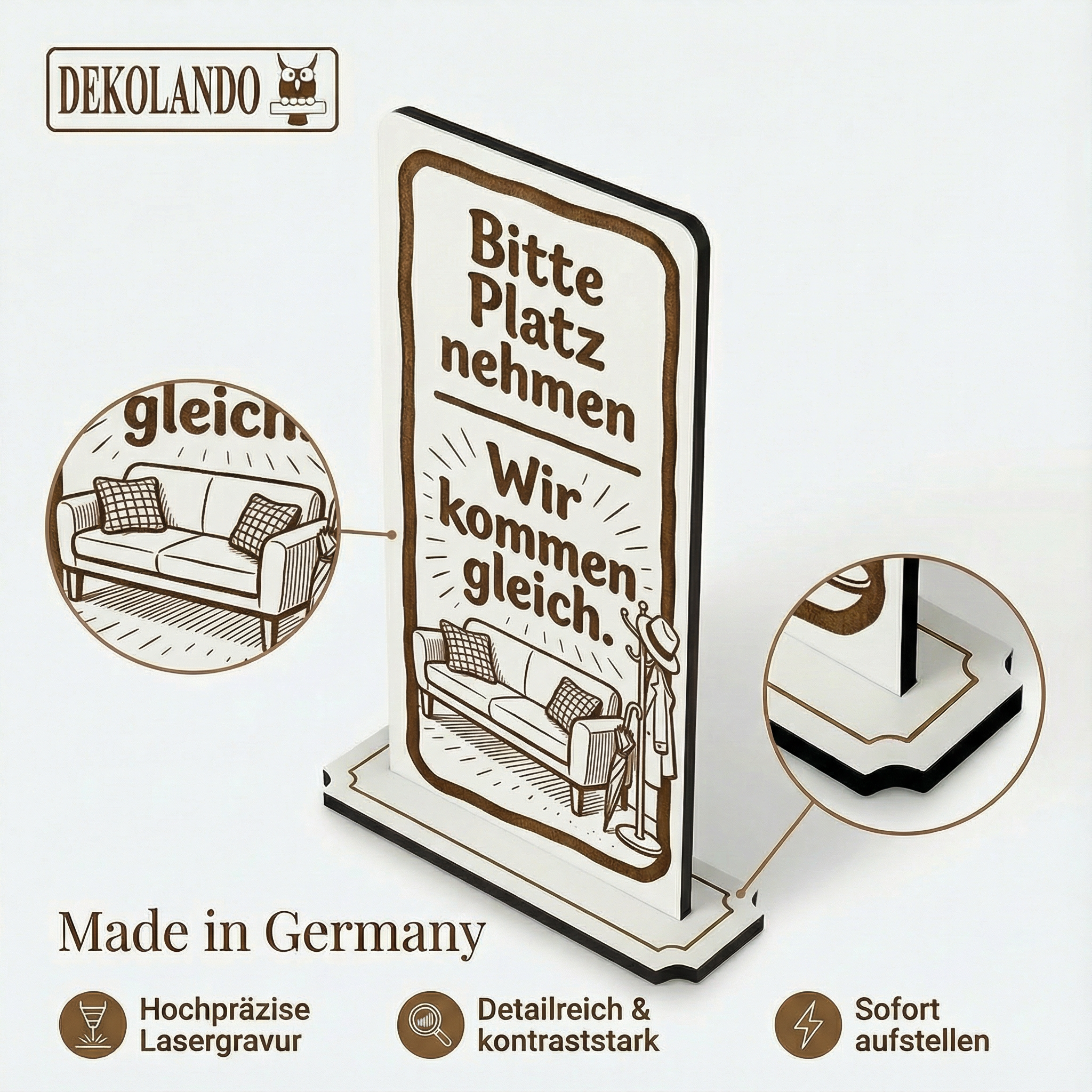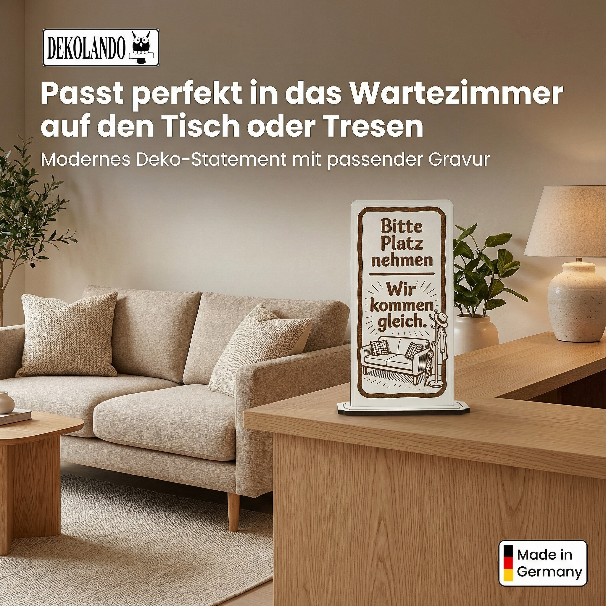 - MOTIV PLATZ NEHMEN: Aufsteller Schild mit Gravur „Bitte Platz nehmen“ – ideal im Wartebereich, Empfang, Praxis oder Servicezone.