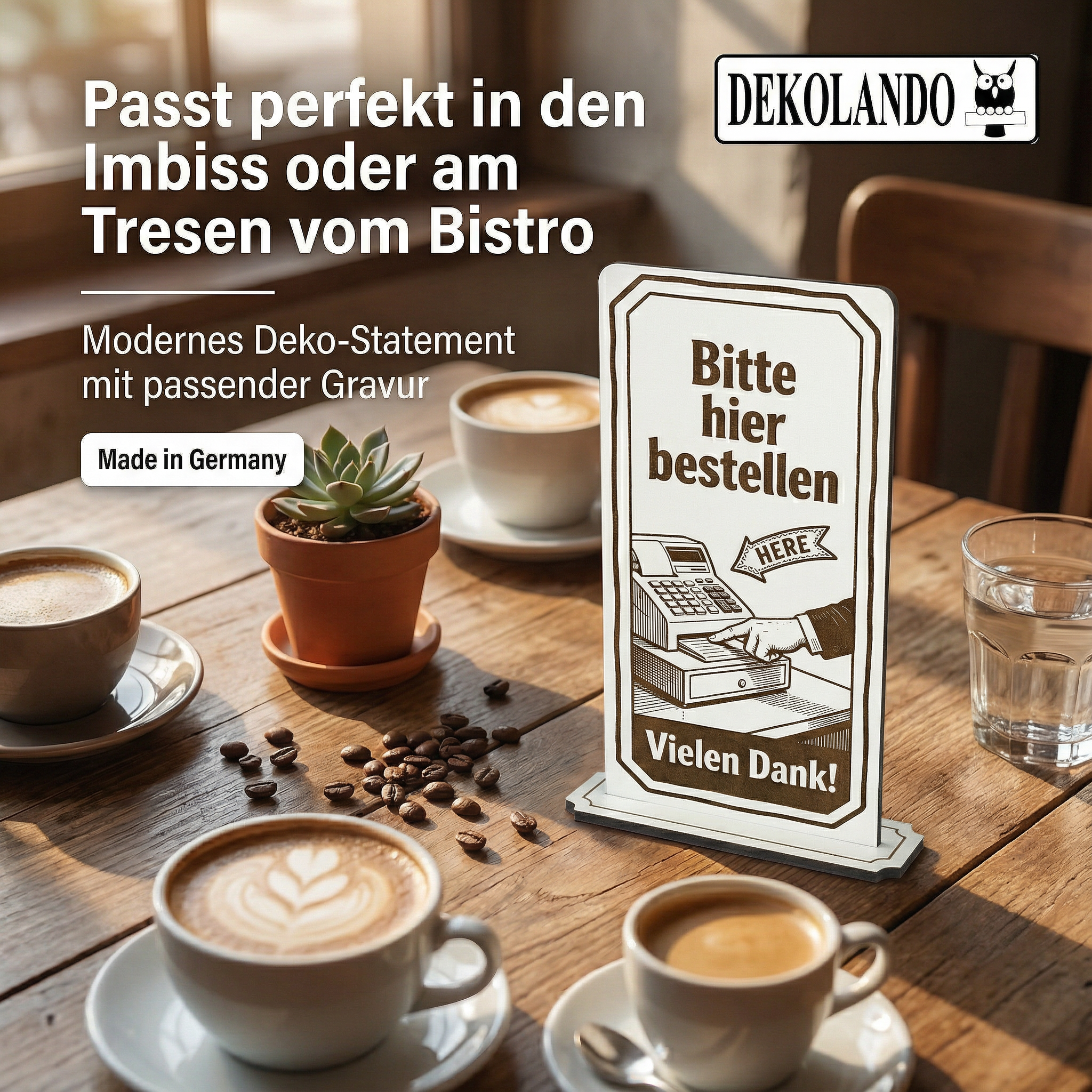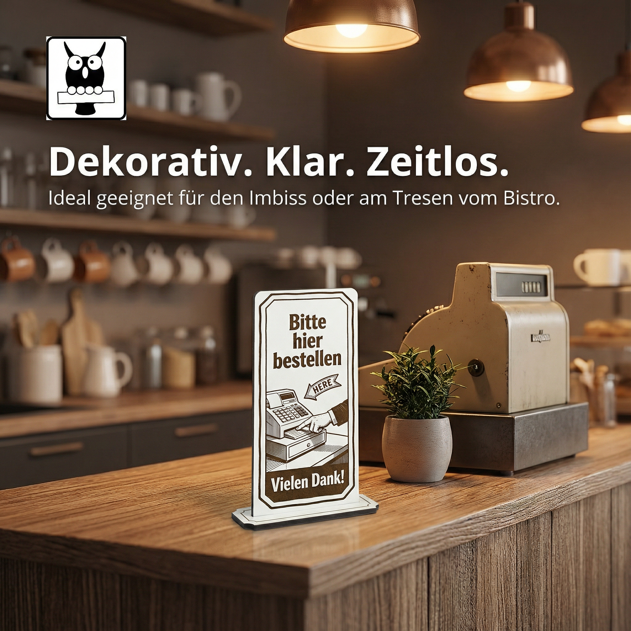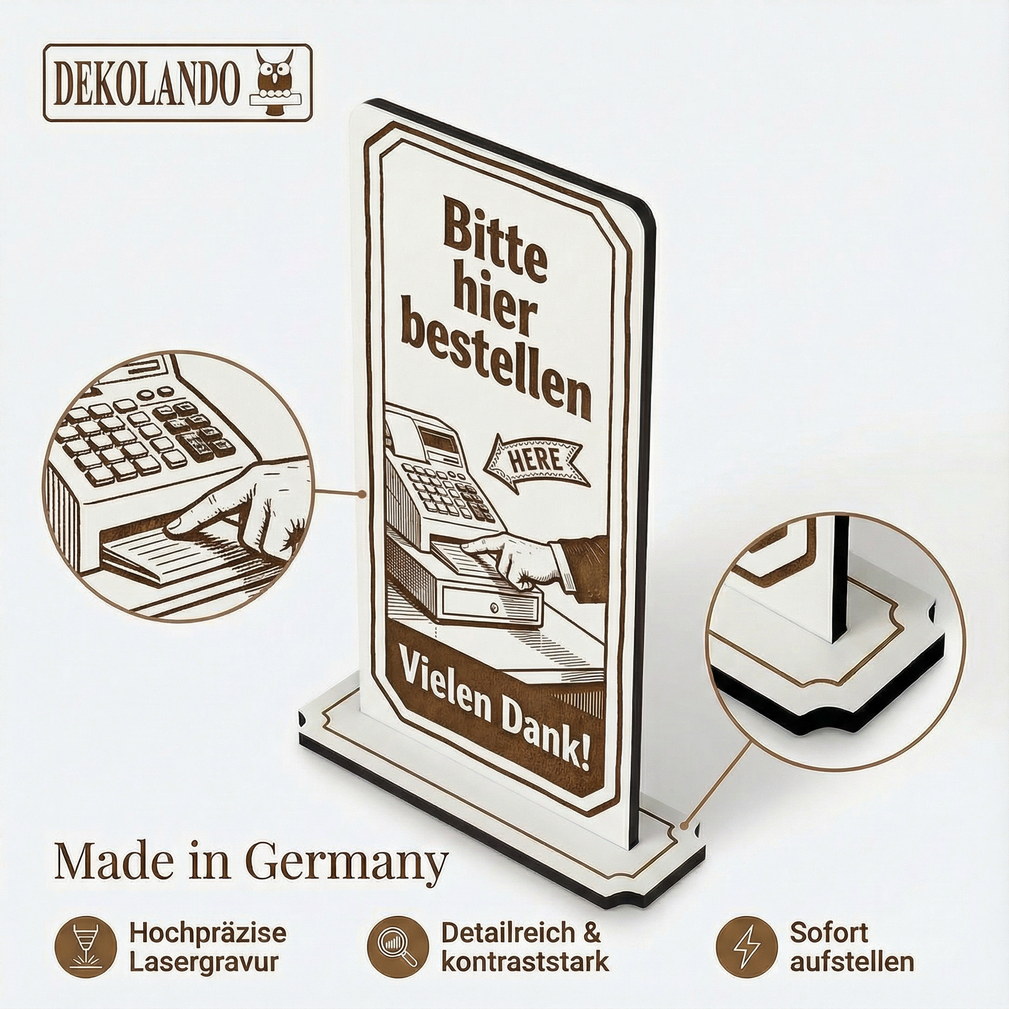 - MOTIV HIER BESTELLEN: Aufsteller Schild mit Gravur „Bitte hier bestellen“ – optimal zur Besucherführung an Kasse, Theke, Tresen oder Bestellpunkt im Imbiss/Bistro.