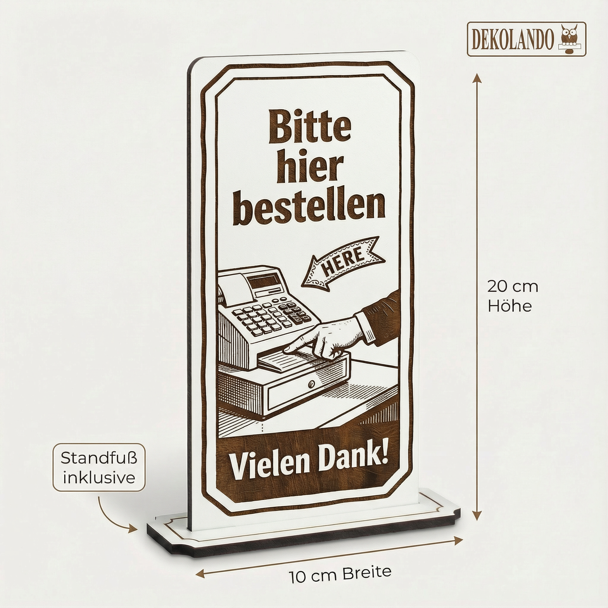 HOCHWERTIGES MATERIAL: 5 mm weißes HDF mit brauner Rückseite, präzise Lasergravur, schwarze Schnittkante, oben abgerundete Form – dekorativ, klar und zeitlos.