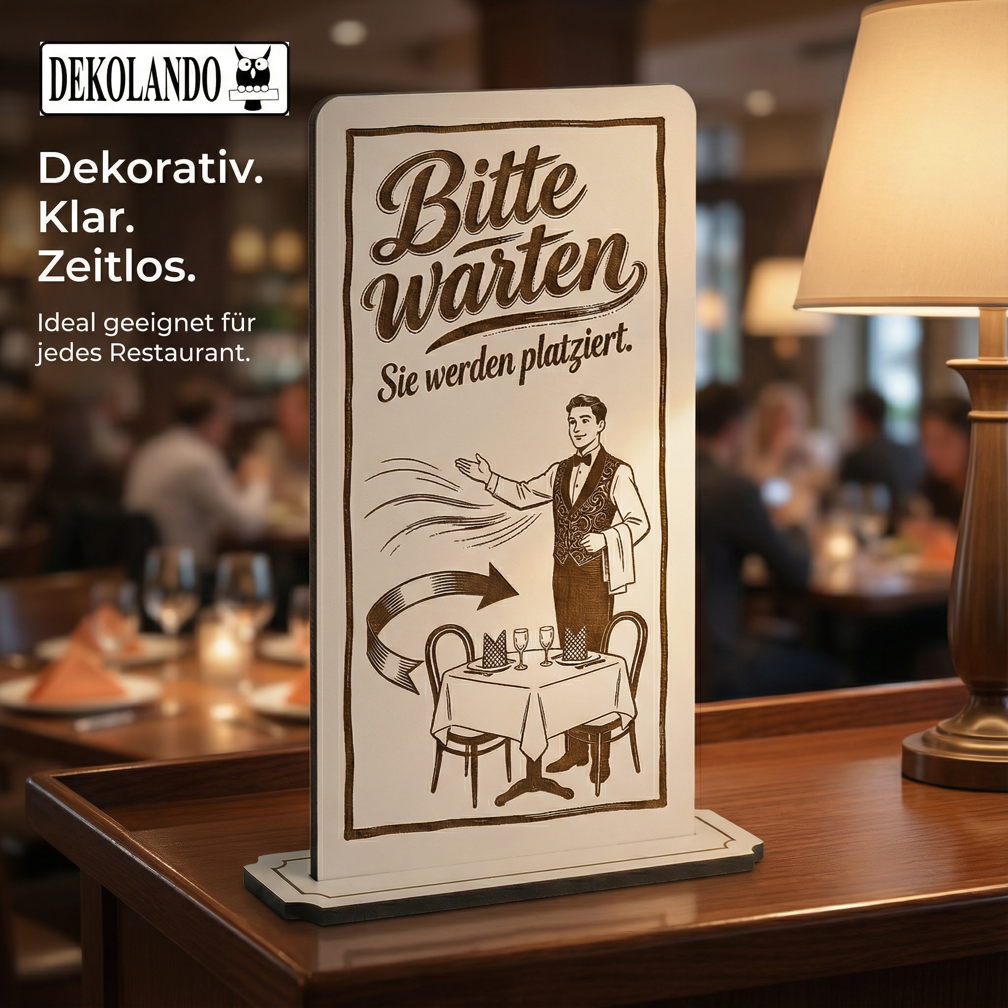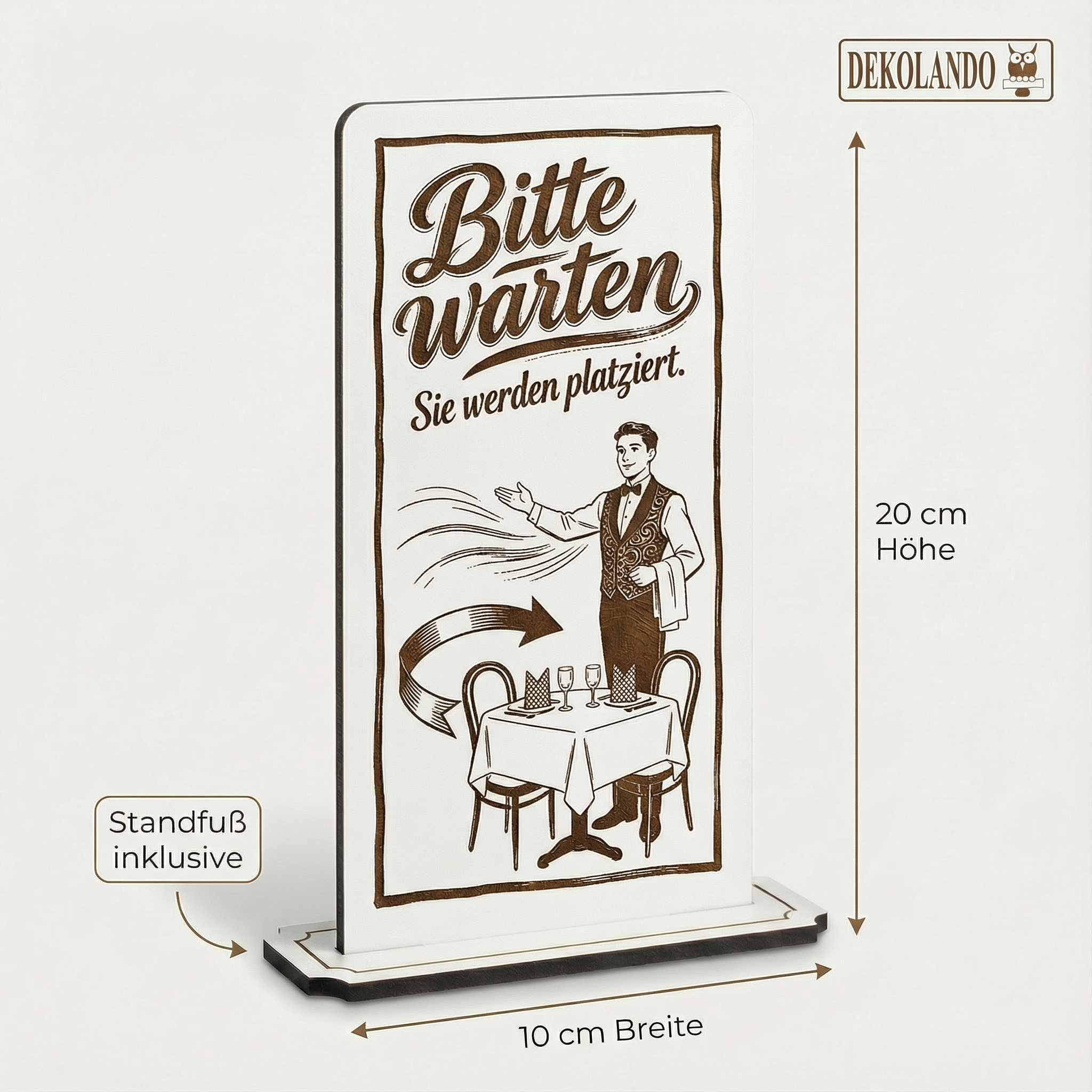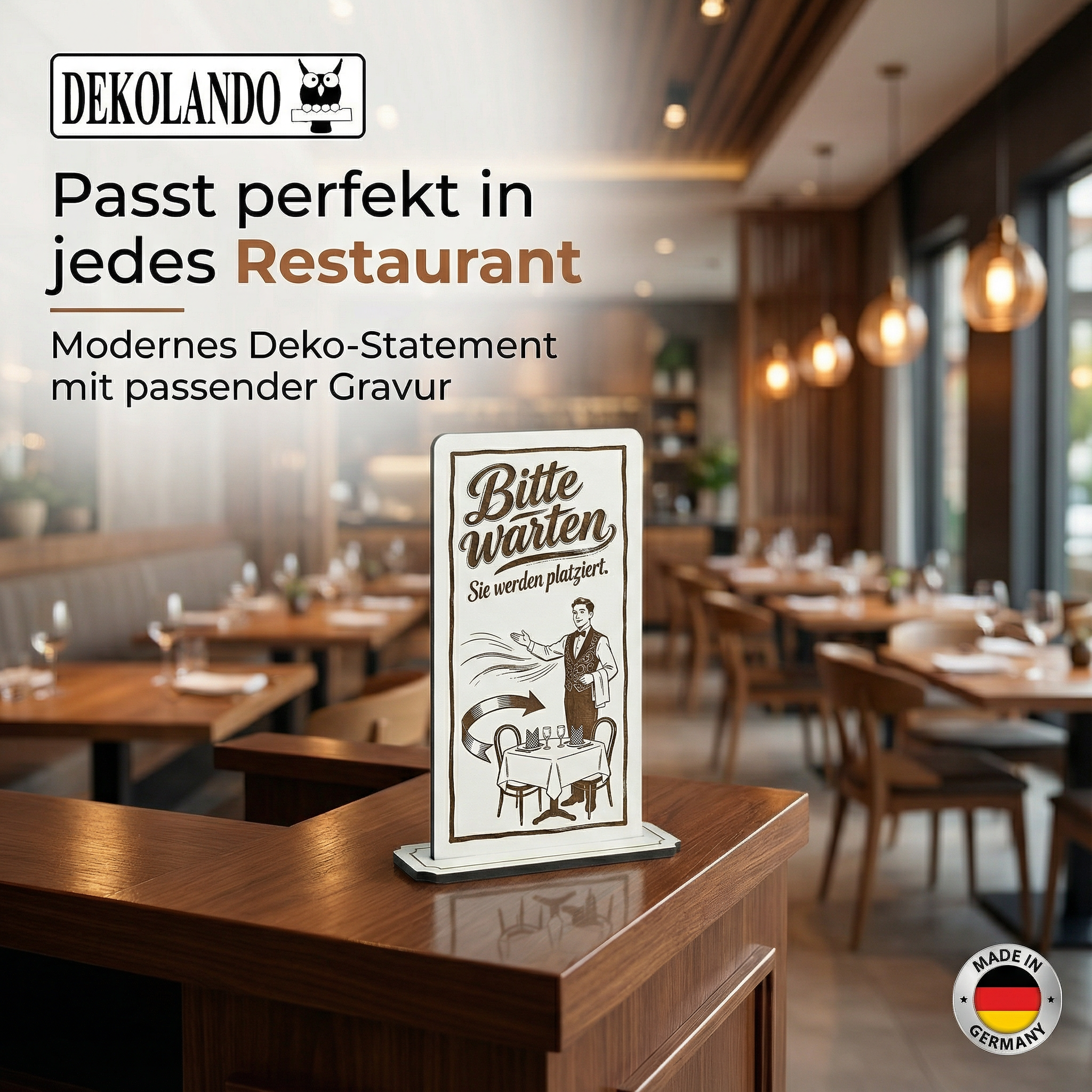 - MOTIV BITTE WARTEN SIE: Aufsteller Schild mit Gravur „Bitte warten, Sie werden gleich bedient“ – ideal am Eingang, Empfang, Host-Stand oder Servicepoint.