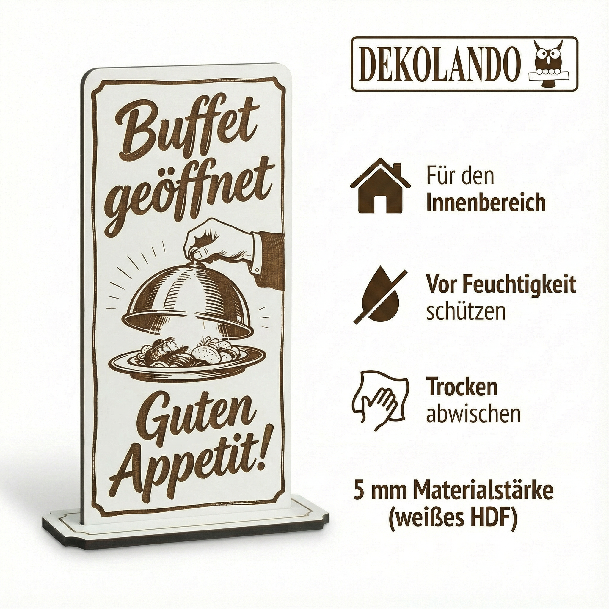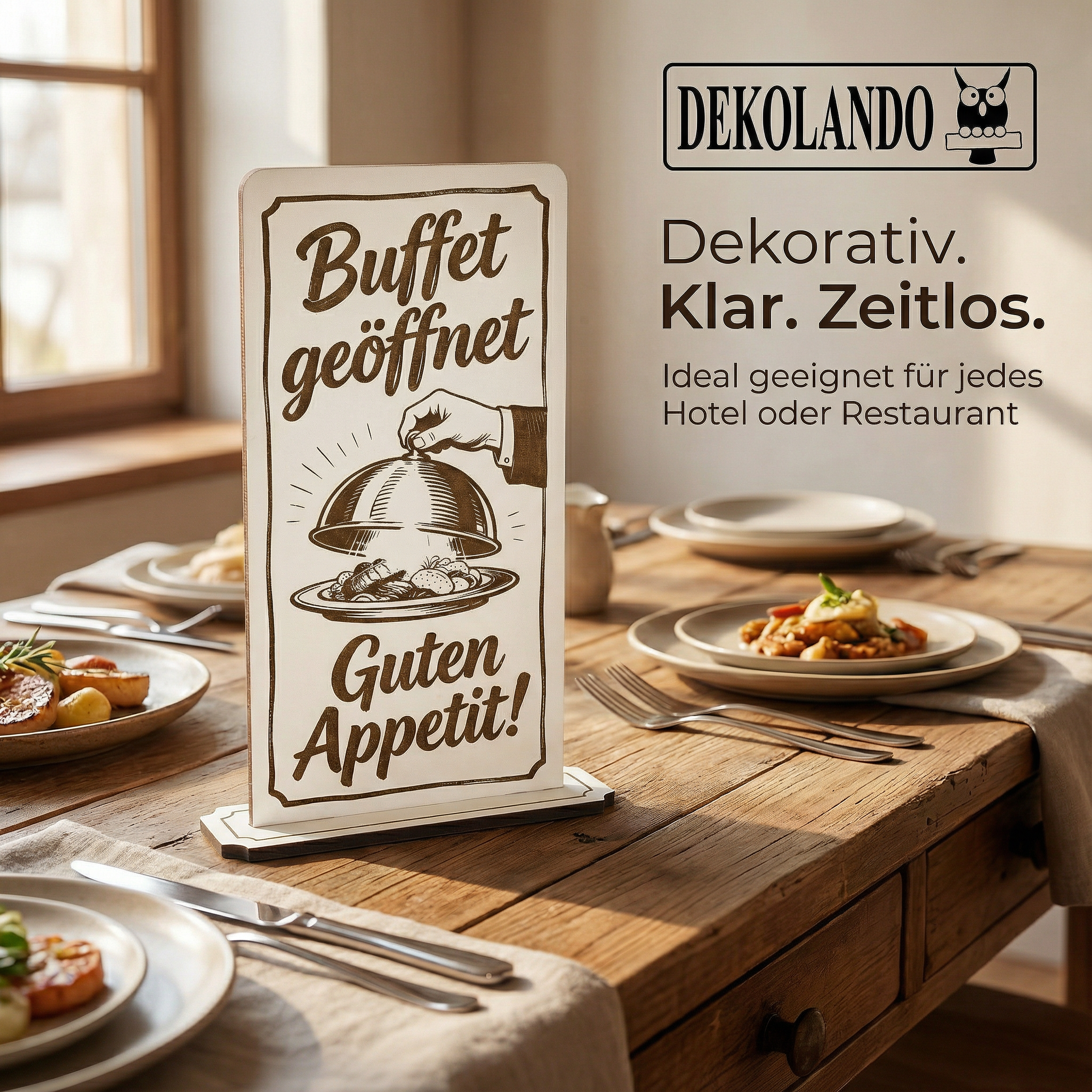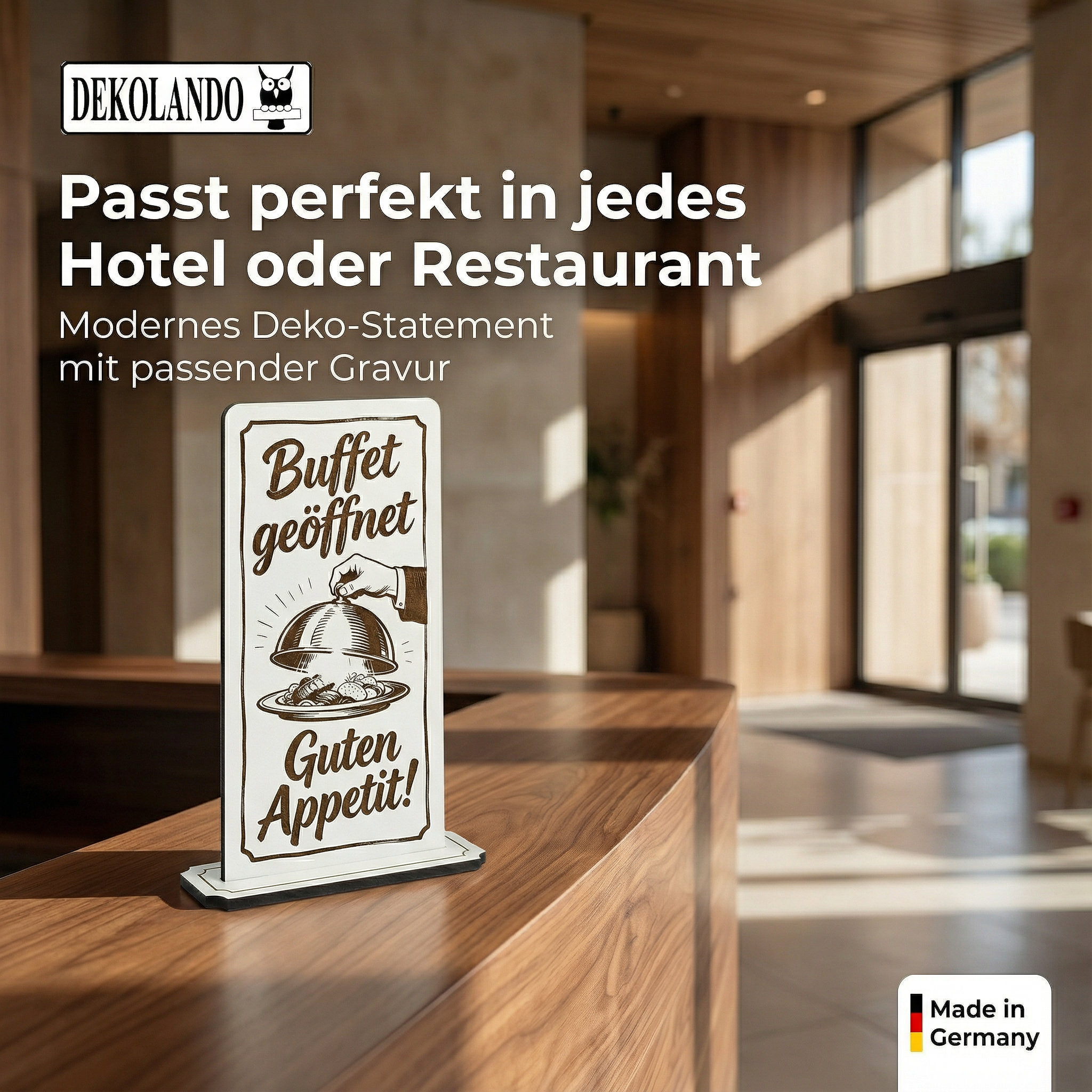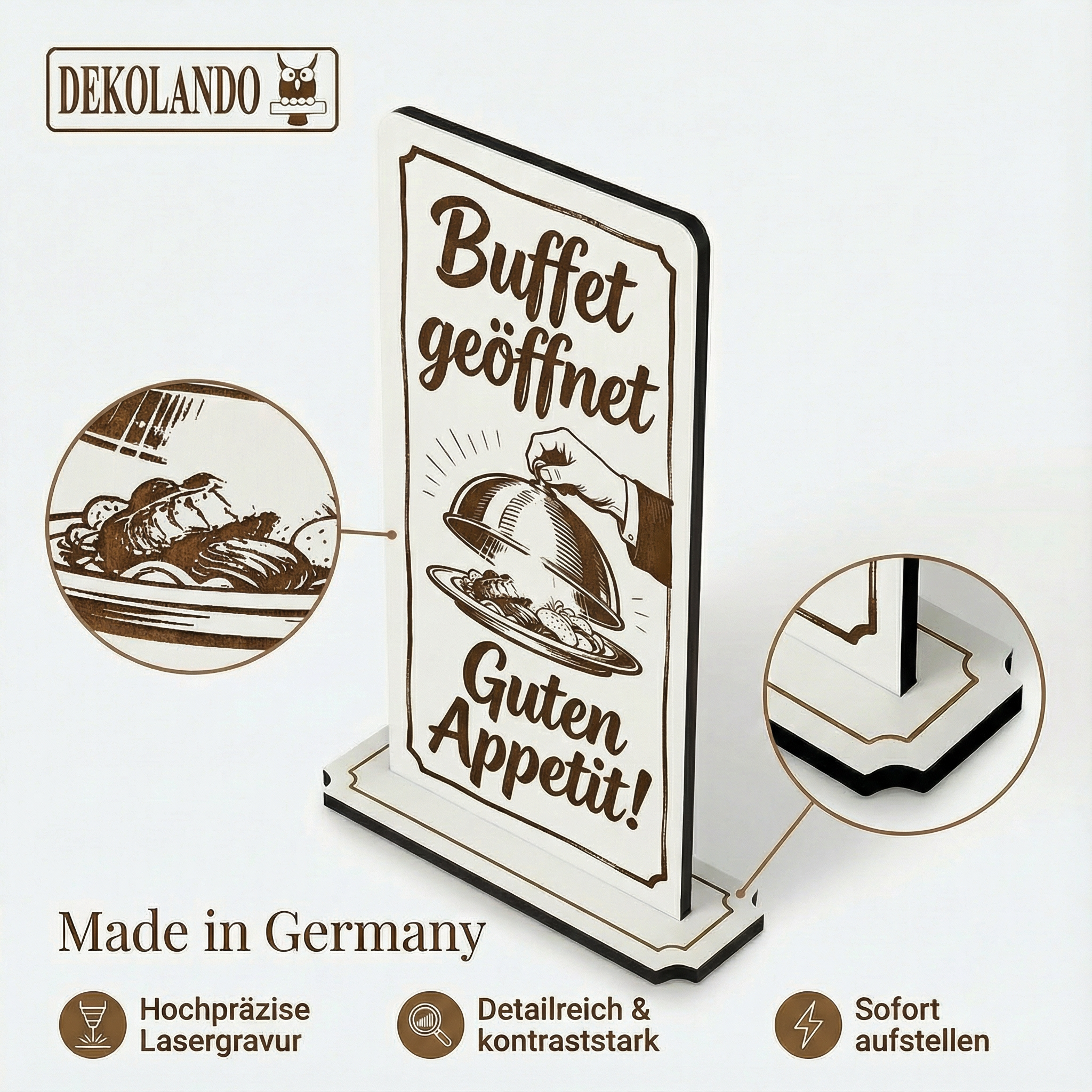 - MOTIV BUFFET GEÖFFNET: Aufsteller Schild mit Gravur „Buffet geöffnet“ – ideal für Frühstücksbuffet, Hotel, Restaurant oder Buffetstation.