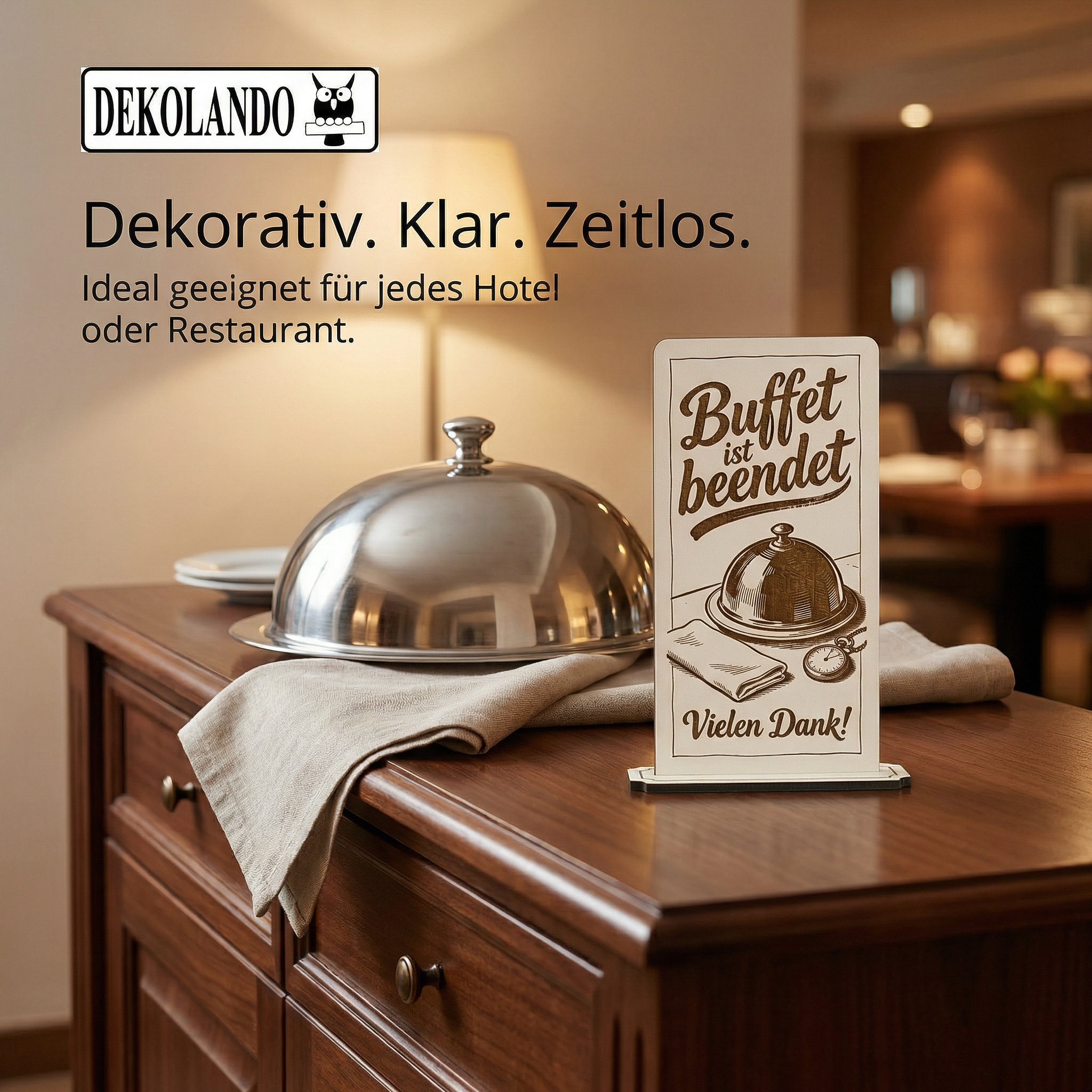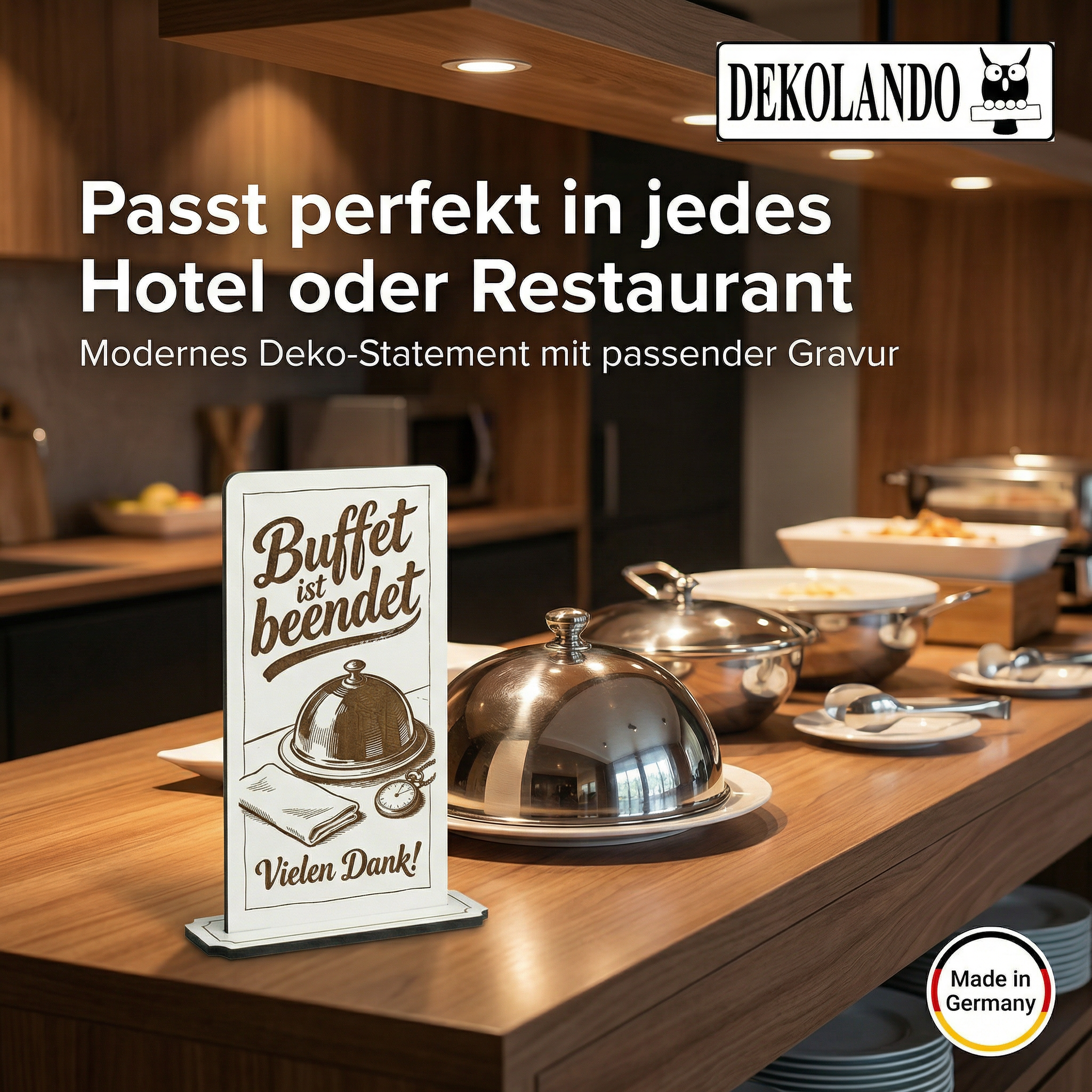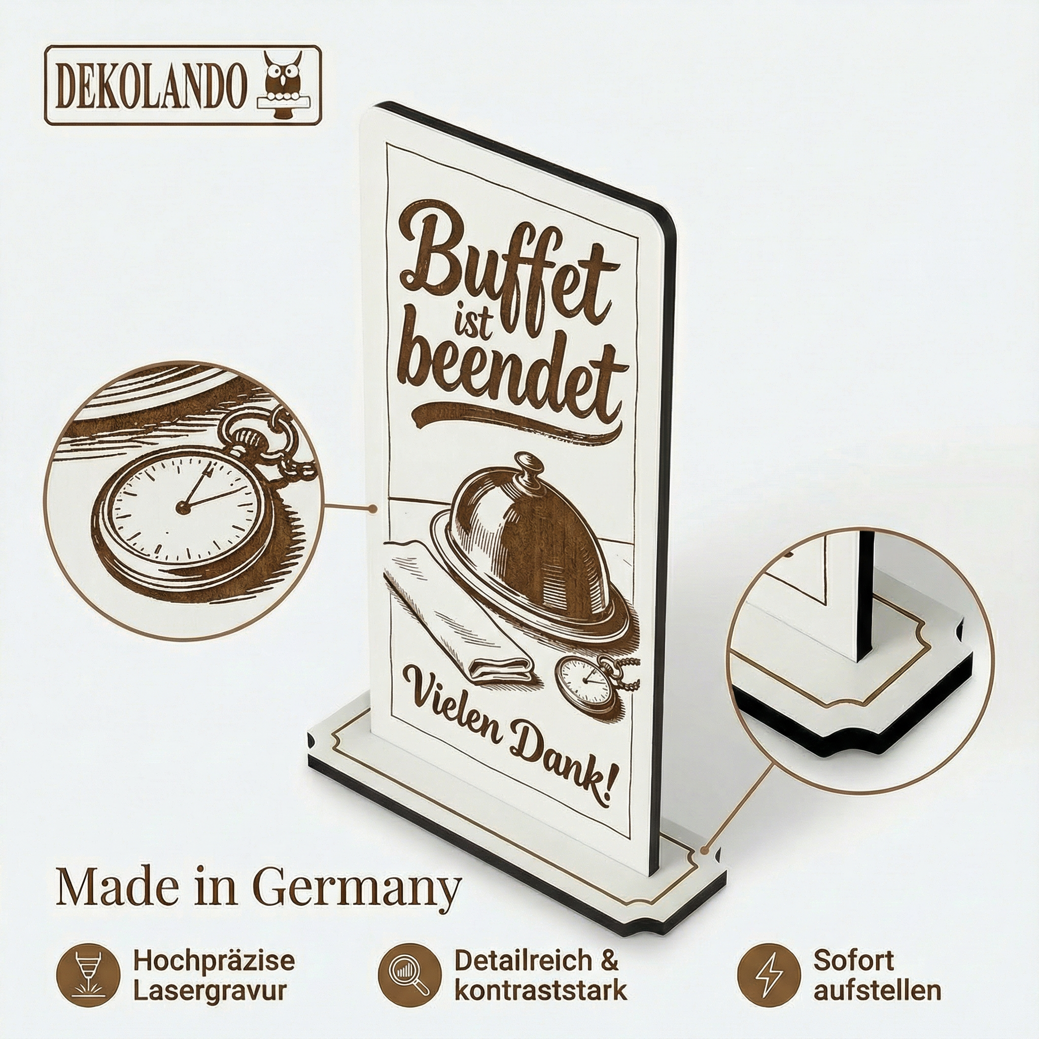 - MOTIV BUFFET BEENDET: Aufsteller Schild mit Gravur „Buffet ist beendet“ – perfekt als klarer Hinweis an Buffetstation, Hotel-Frühstück oder Restaurant.