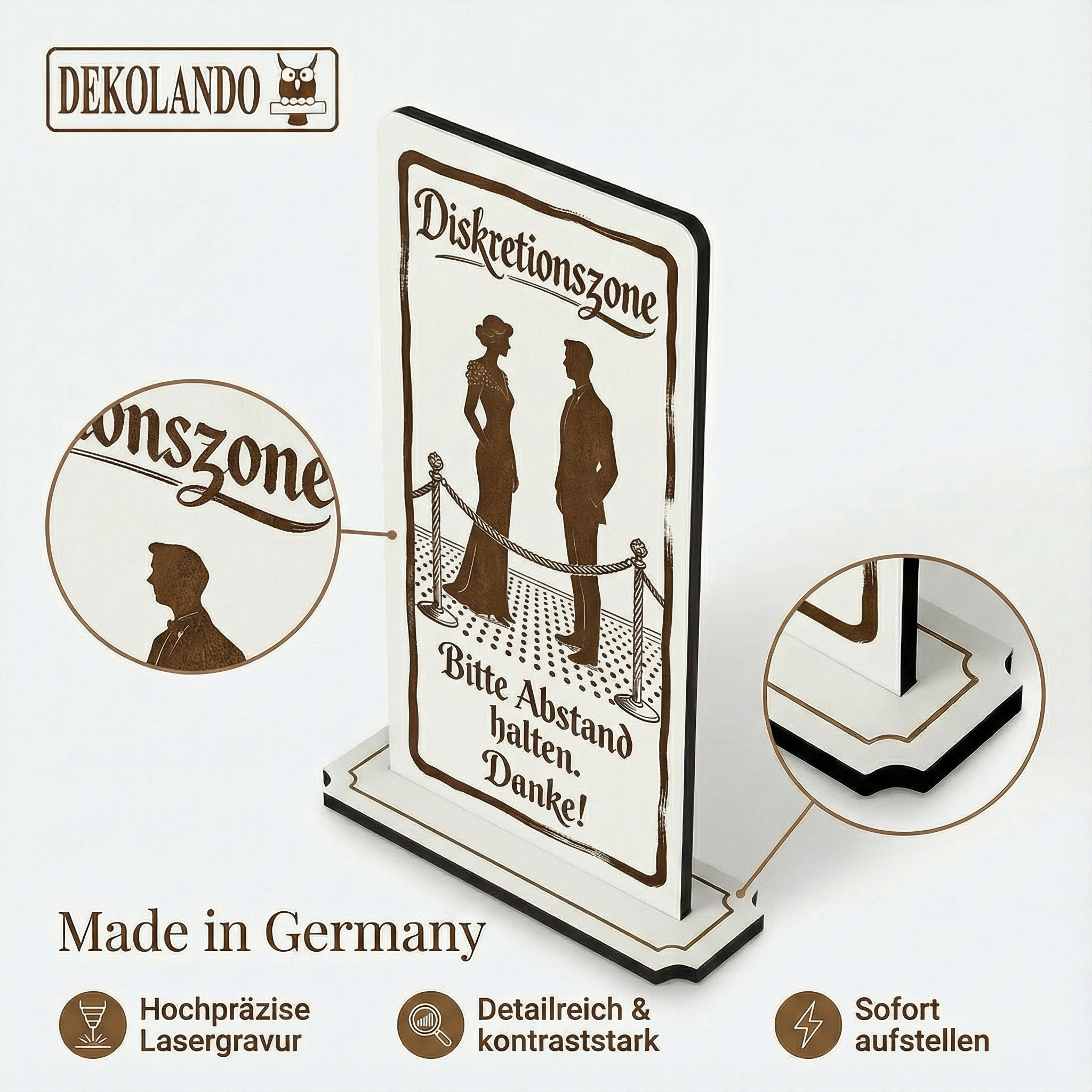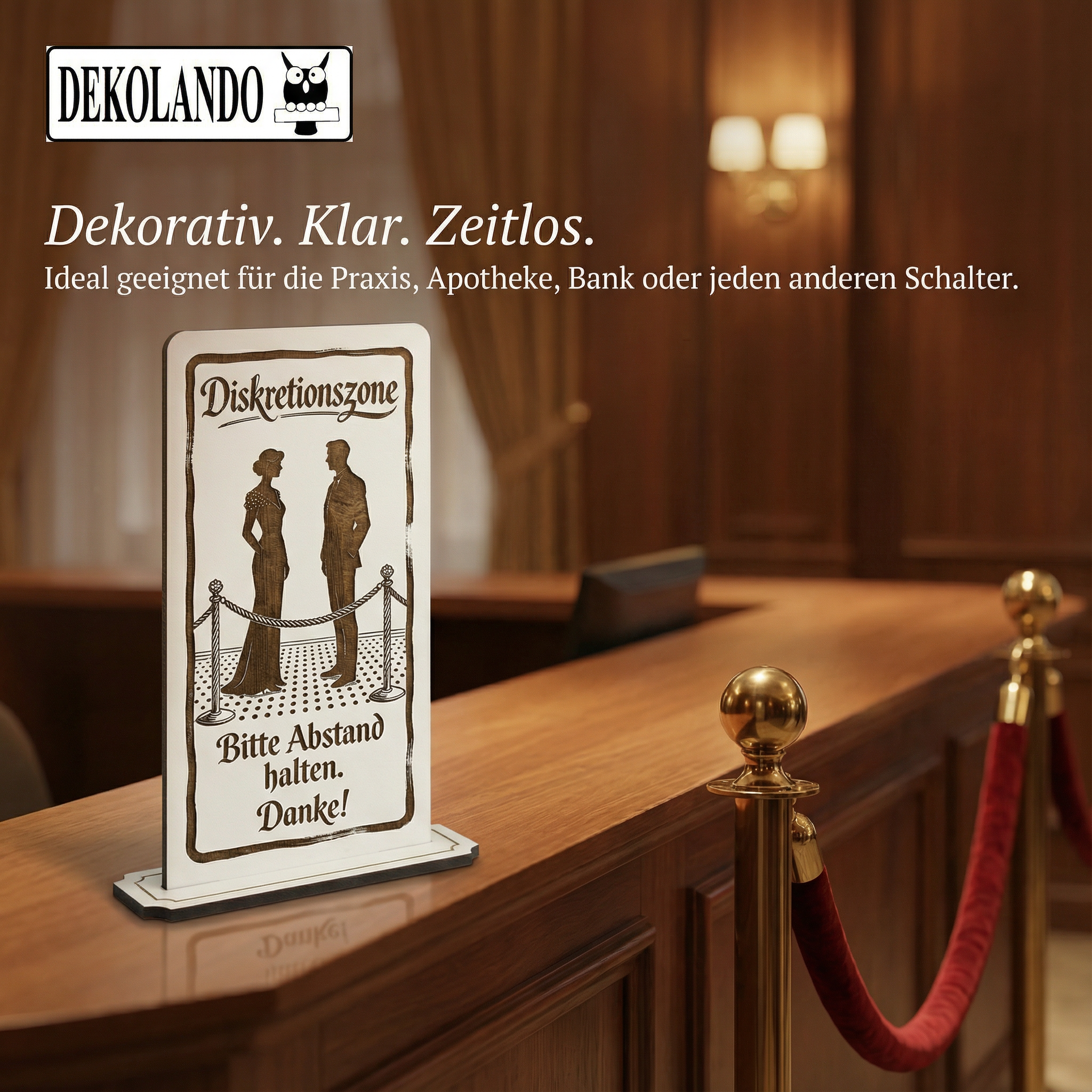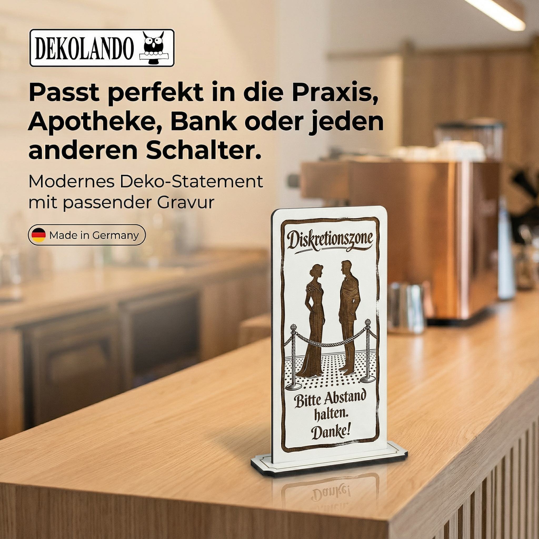 - MOTIV DISKRETIONSZONE: Aufsteller Schild mit Gravur „Diskretionszone“ – ideal für Empfang, Anmeldung, Beratungsplatz oder Datenschutzbereich.