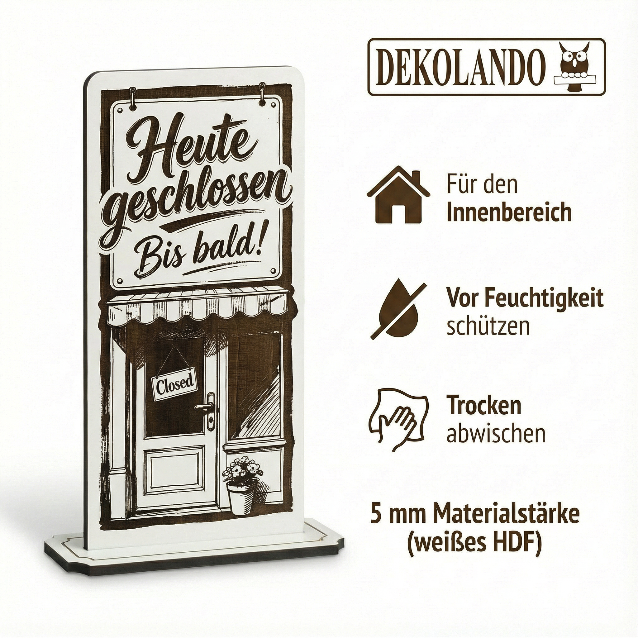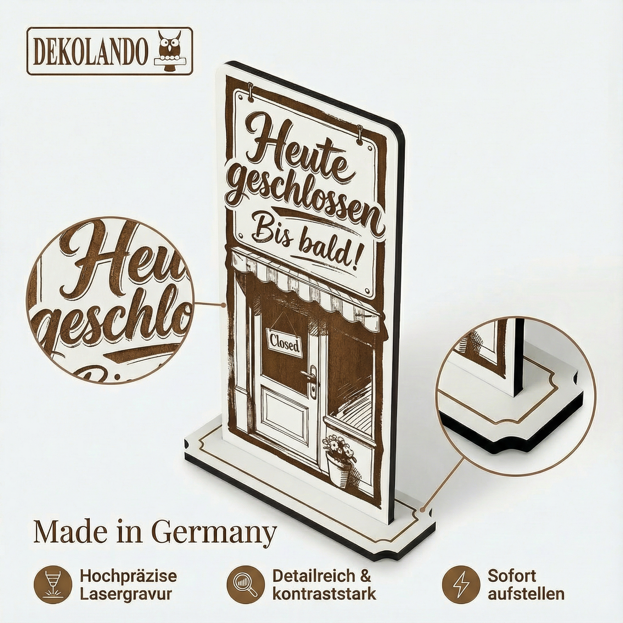 - MOTIV HEUTE GESCHLOSSEN: Aufsteller Schild mit Gravur „Heute geschlossen“ – gut sichtbar am Eingang, Schaufenster, Tresen oder Kasse.