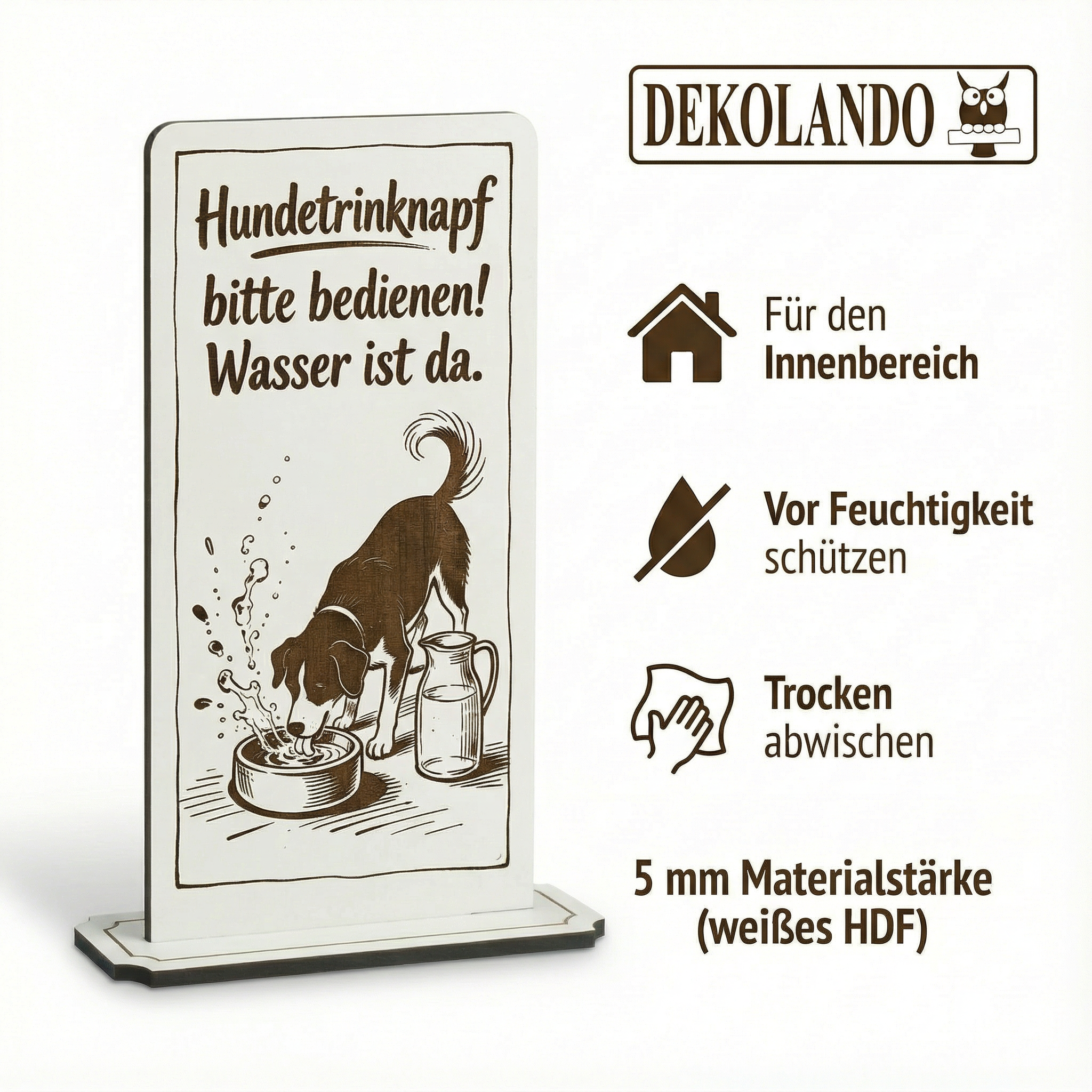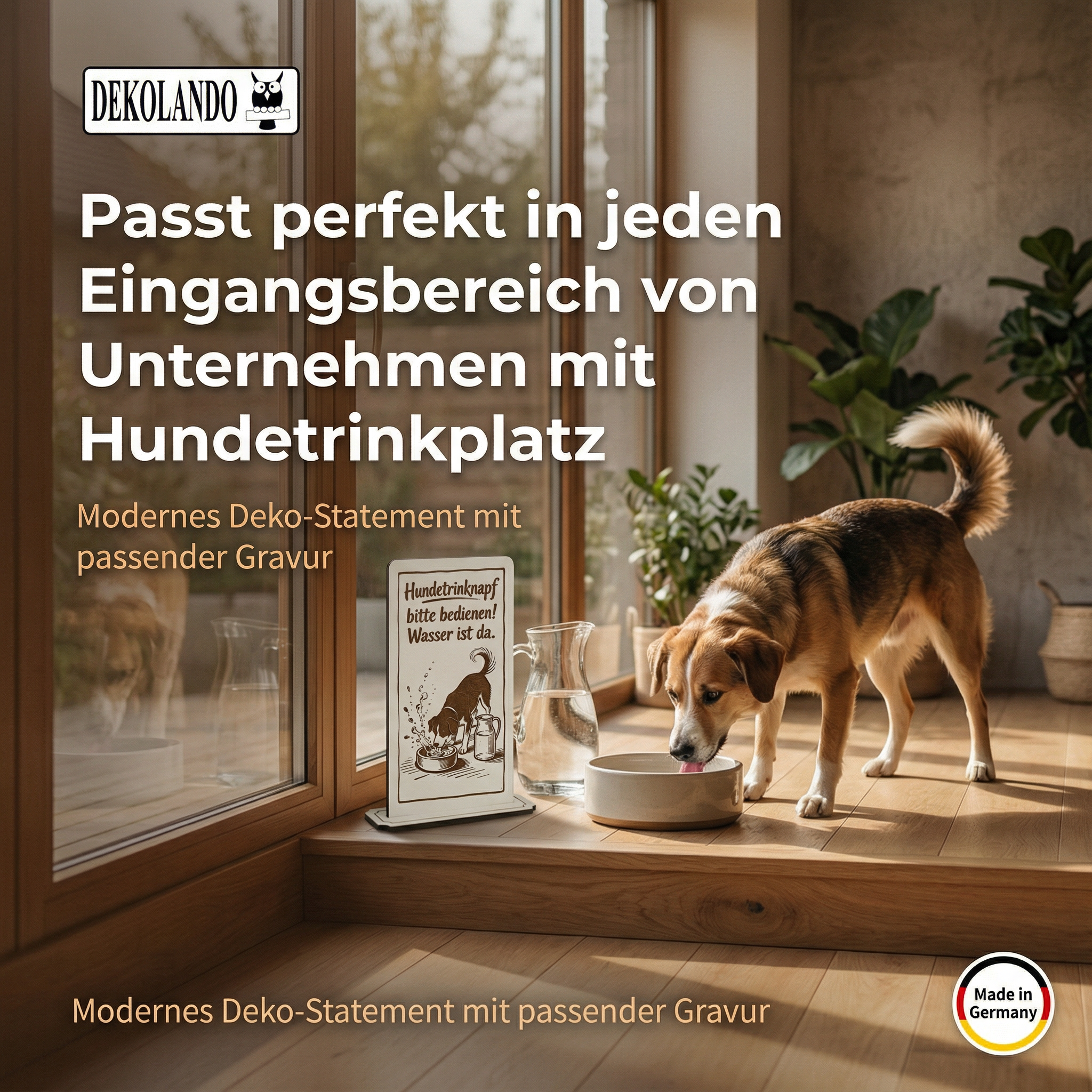 - MOTIV HUNDETRINKNAPF: Aufsteller Schild mit Gravur „Hundetrinknapf“ – perfekt als Hinweis bei Wasserstation im Café, Restaurant oder Eingangsbereich.