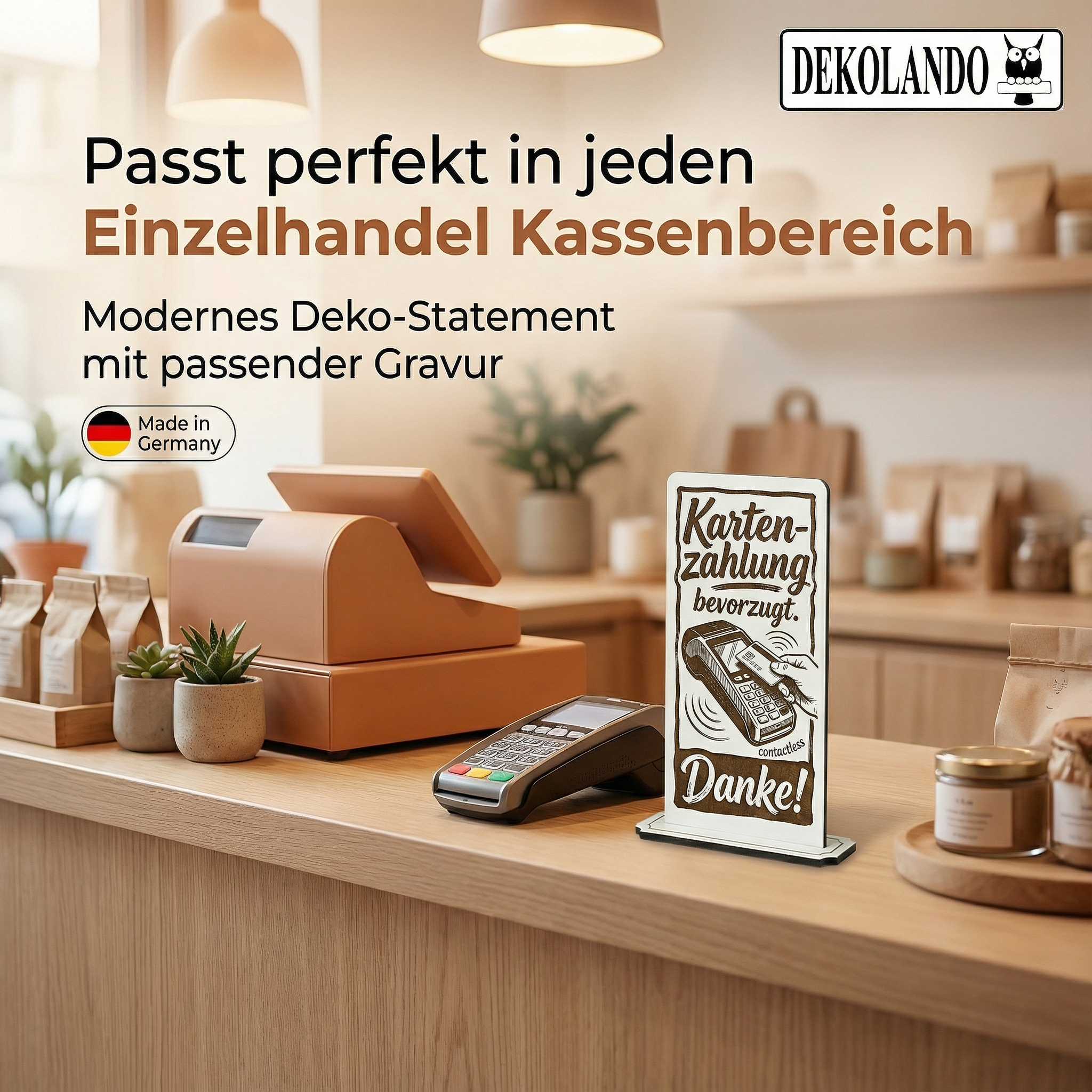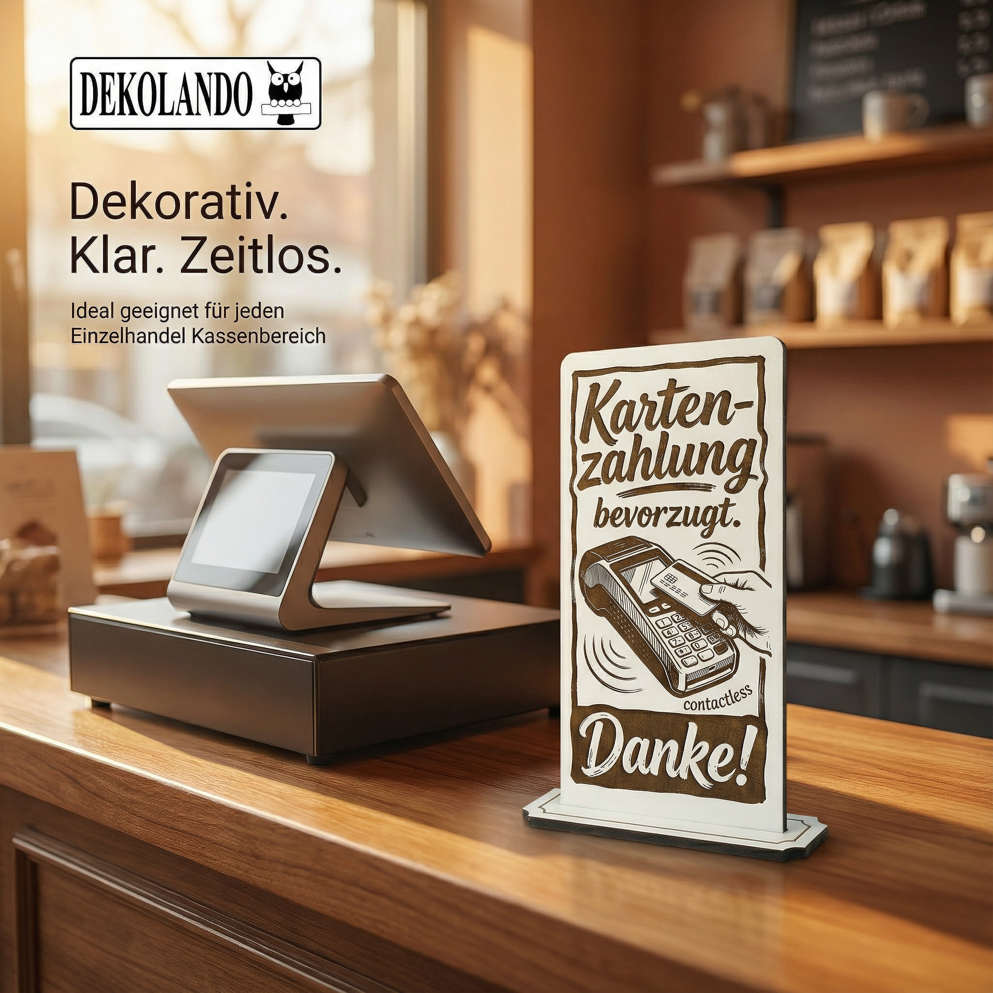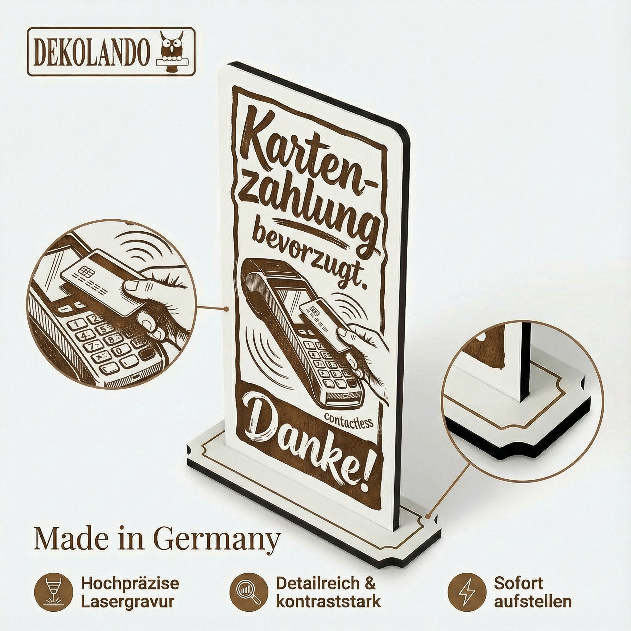 - MOTIV KARTENZAHLUNG: Aufsteller Schild mit Gravur „Kartenzahlung möglich“ – ideal an Kasse, Tresen, Theke oder Checkout im Gastro-/Einzelhandel.