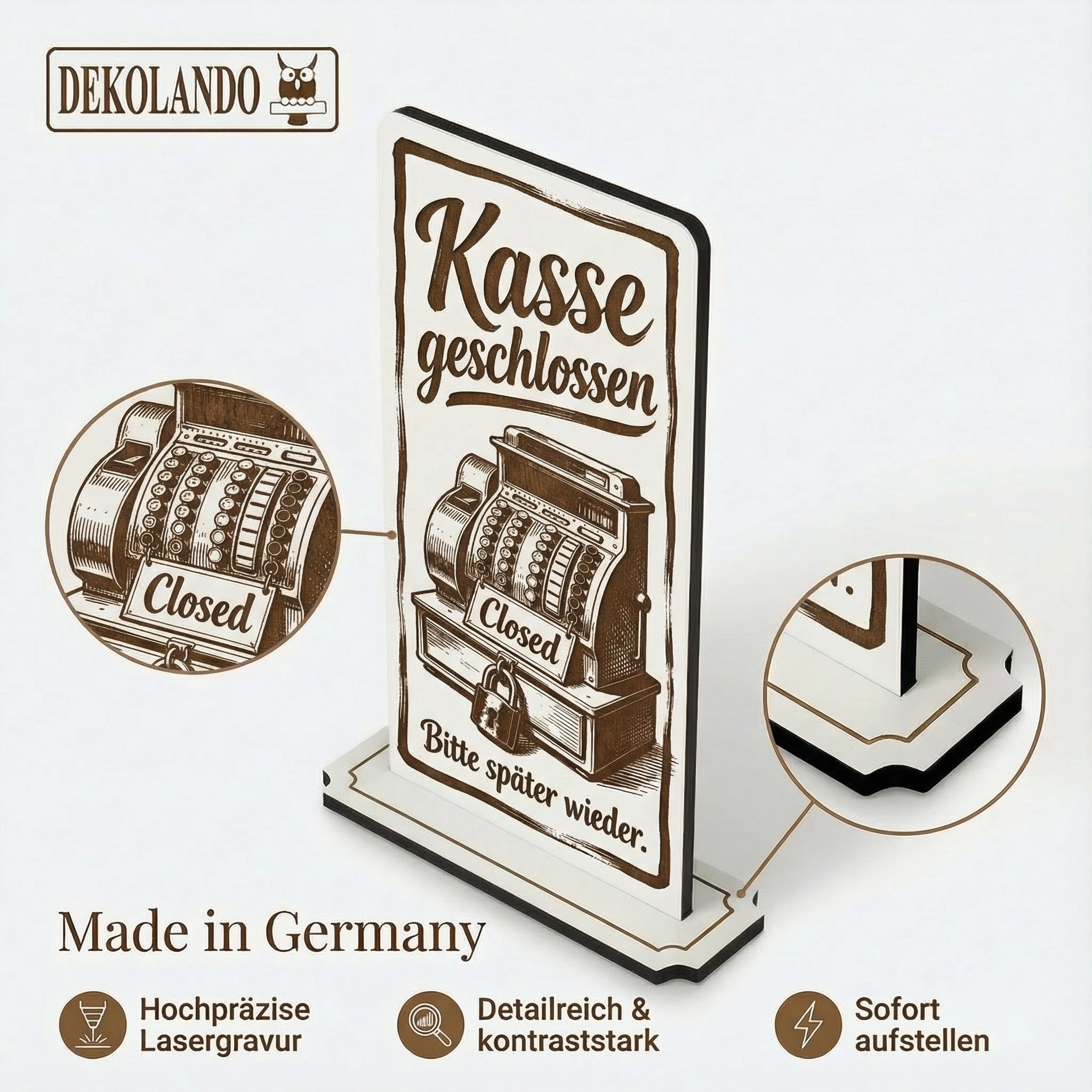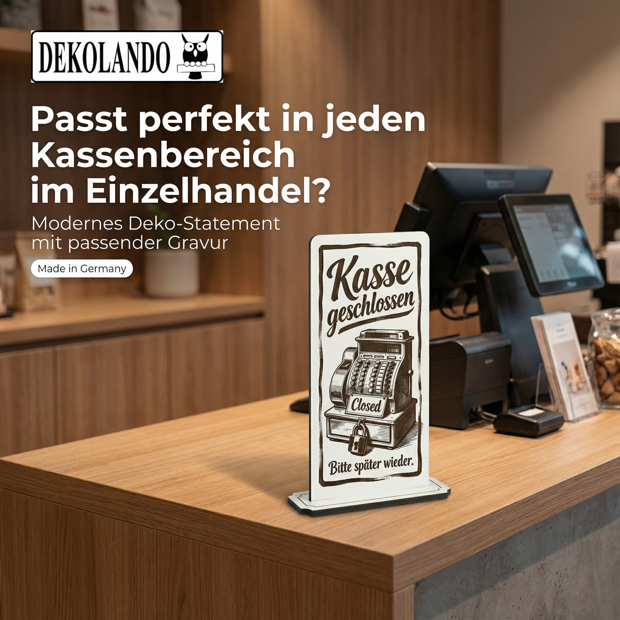 - MOTIV KASSE GESCHLOSSEN: Aufsteller Schild mit Gravur „Kasse geschlossen“ – praktischer Hinweis an Kasse, Tresen oder Checkout-Zone.