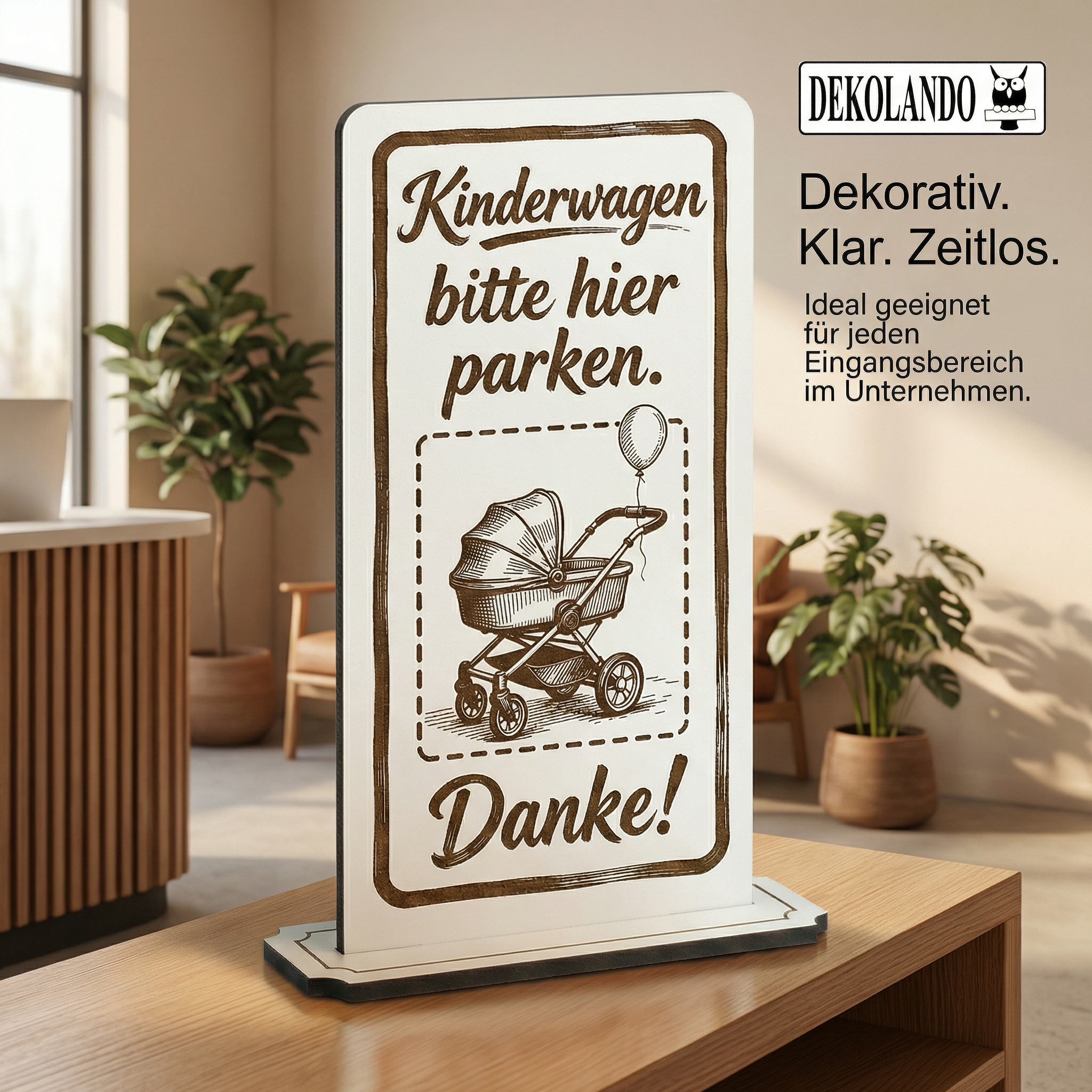 - MOTIV KINDERWAGEN PARKEN: Aufsteller Schild mit Gravur „Kinderwagen bitte hier parken“ – perfekt für Restaurant, Café, Eingangsbereich oder Flur.