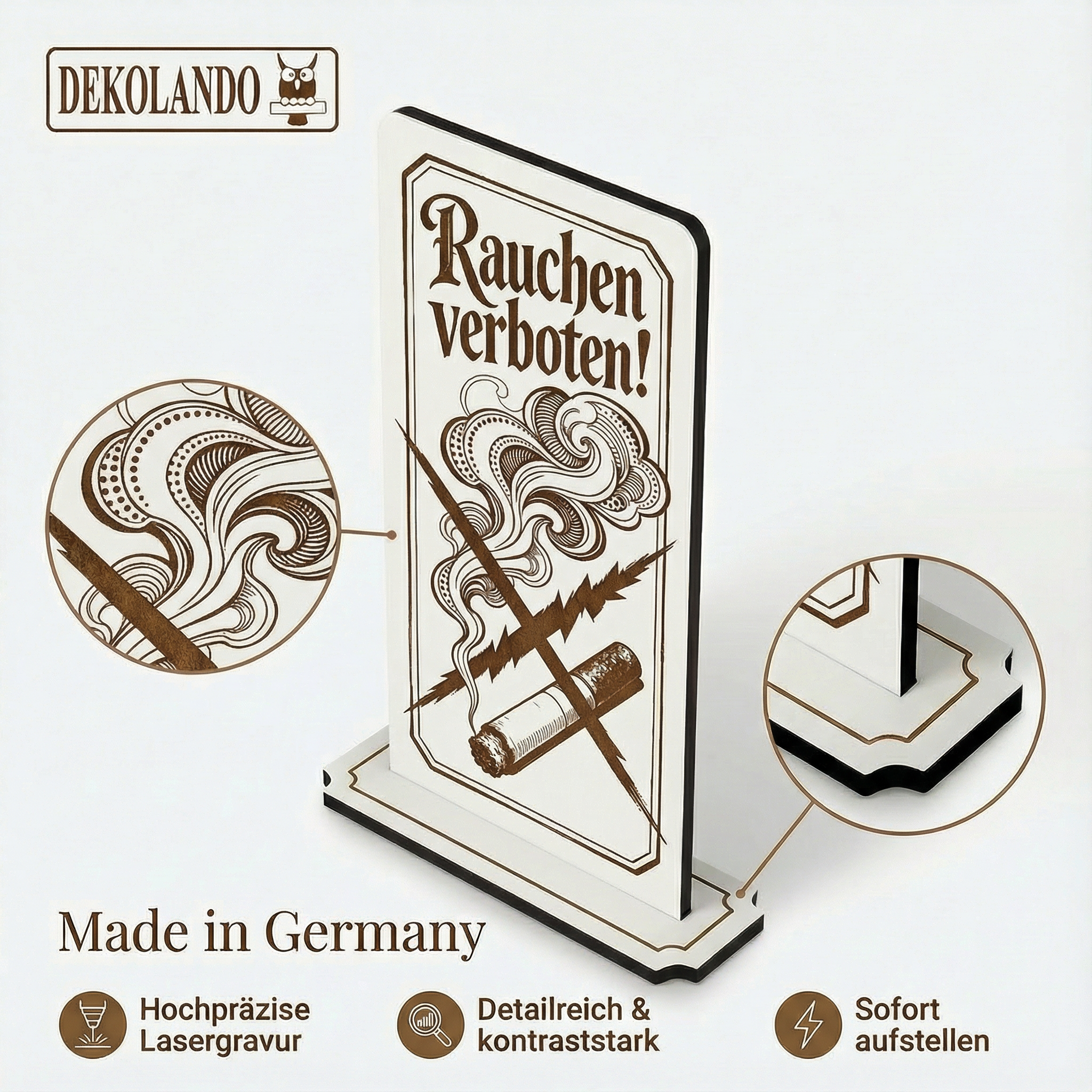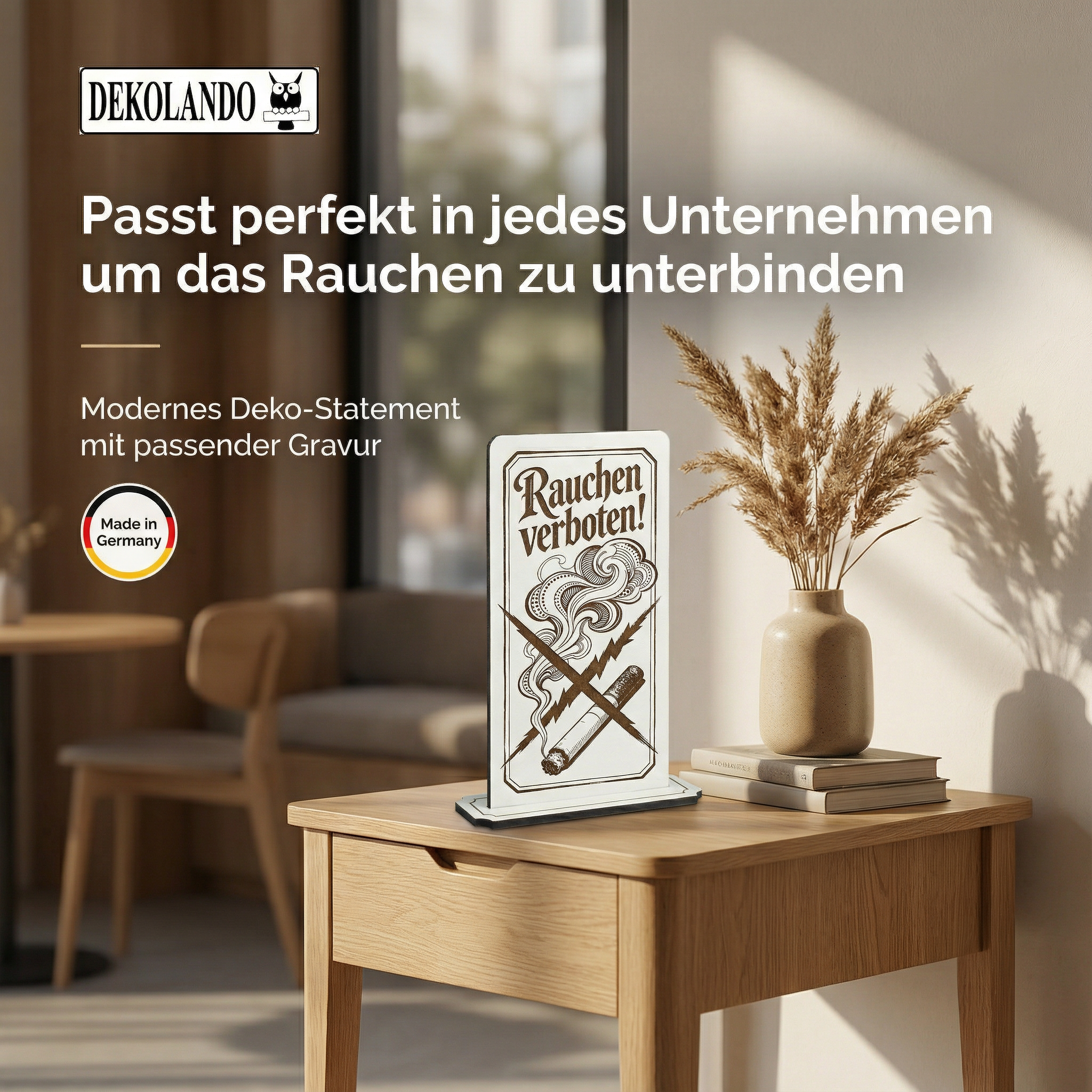 - MOTIV RAUCHEN VERBOTEN: Aufsteller Schild mit Gravur „Rauchen verboten“ – ideal für Innenbereich, Eingang, Flur oder Restaurant.