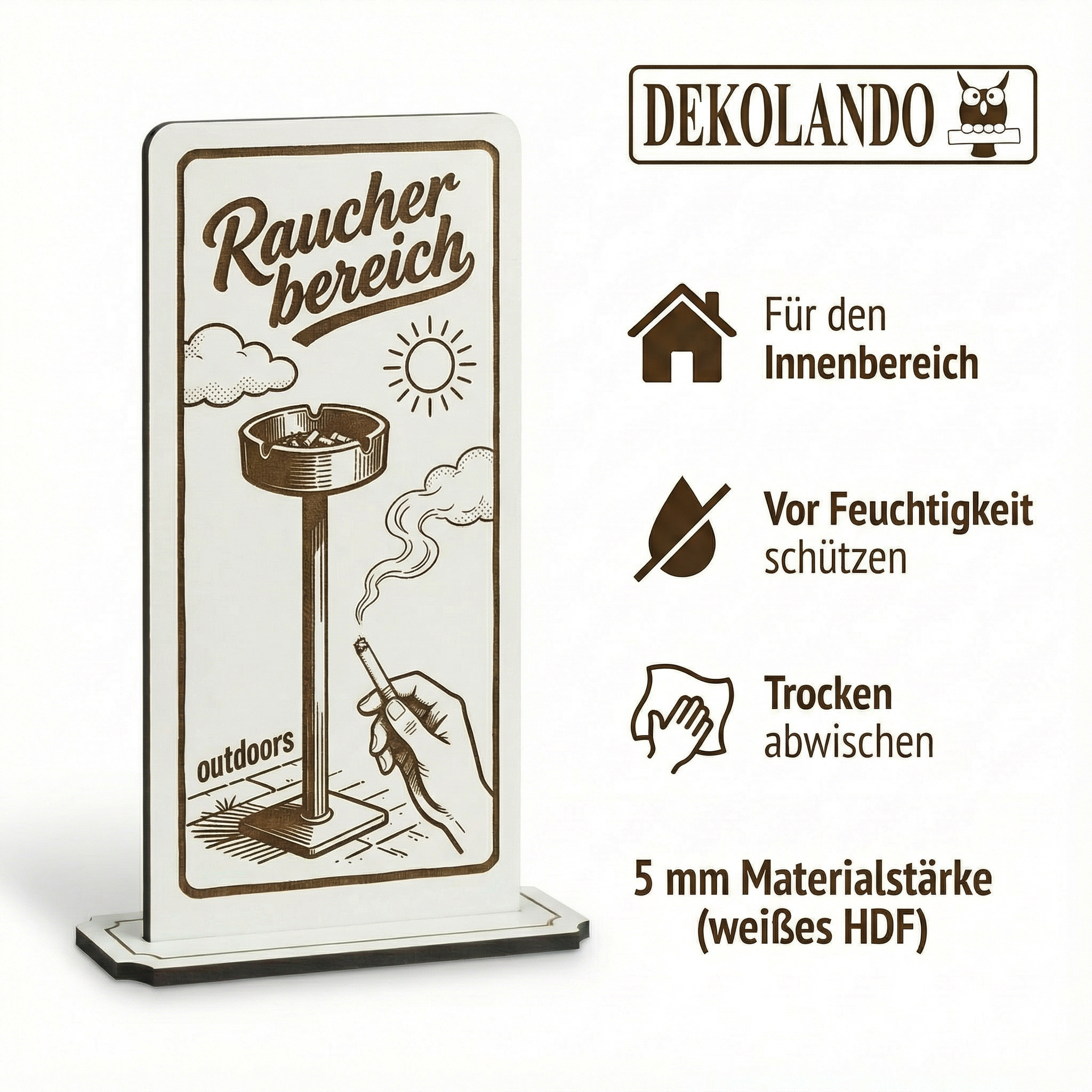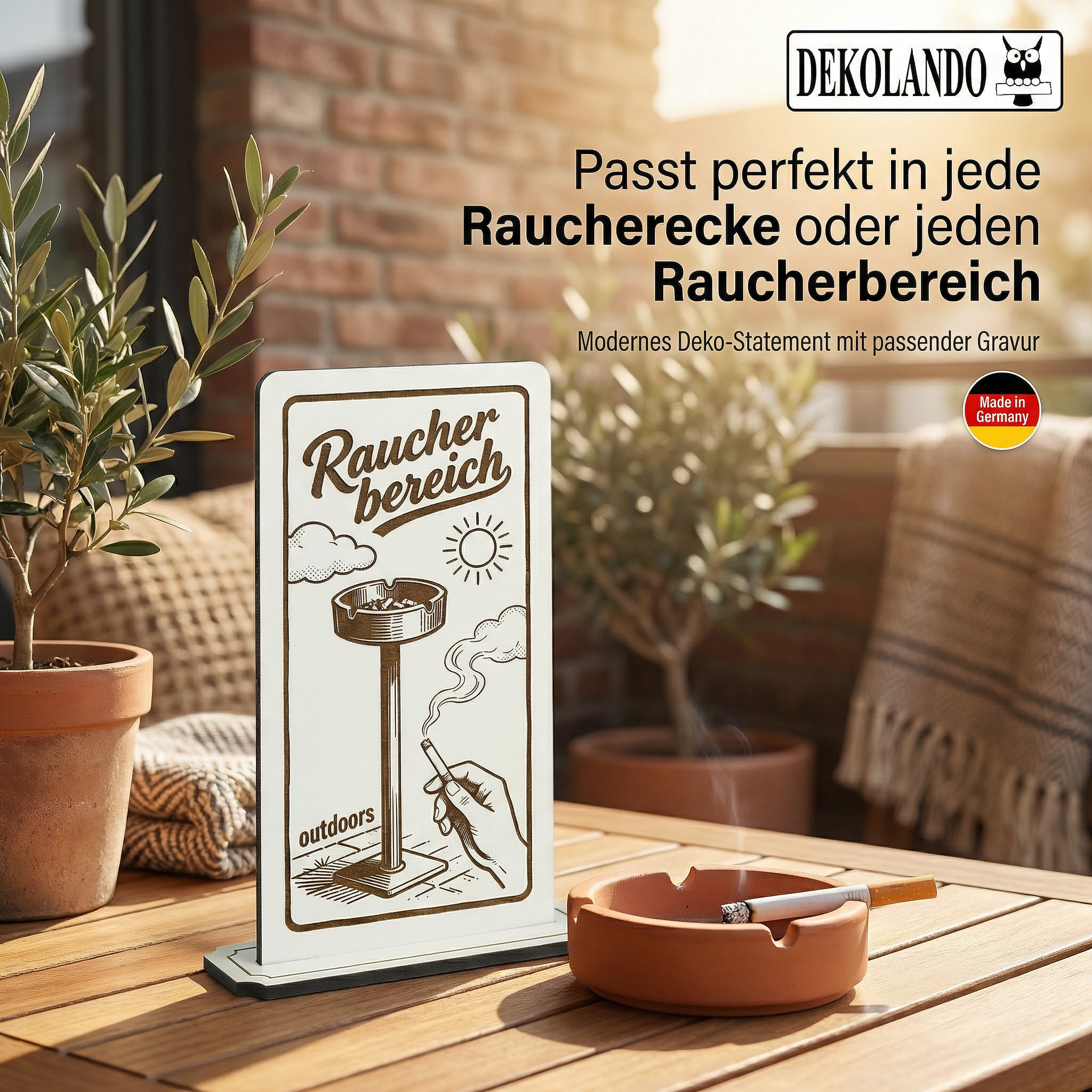 - MOTIV RAUCHERBEREICH: Aufsteller Schild mit Gravur „Raucherbereich“ – gut sichtbar im Außenbereich, Terrasse, Biergarten oder Raucherzone.