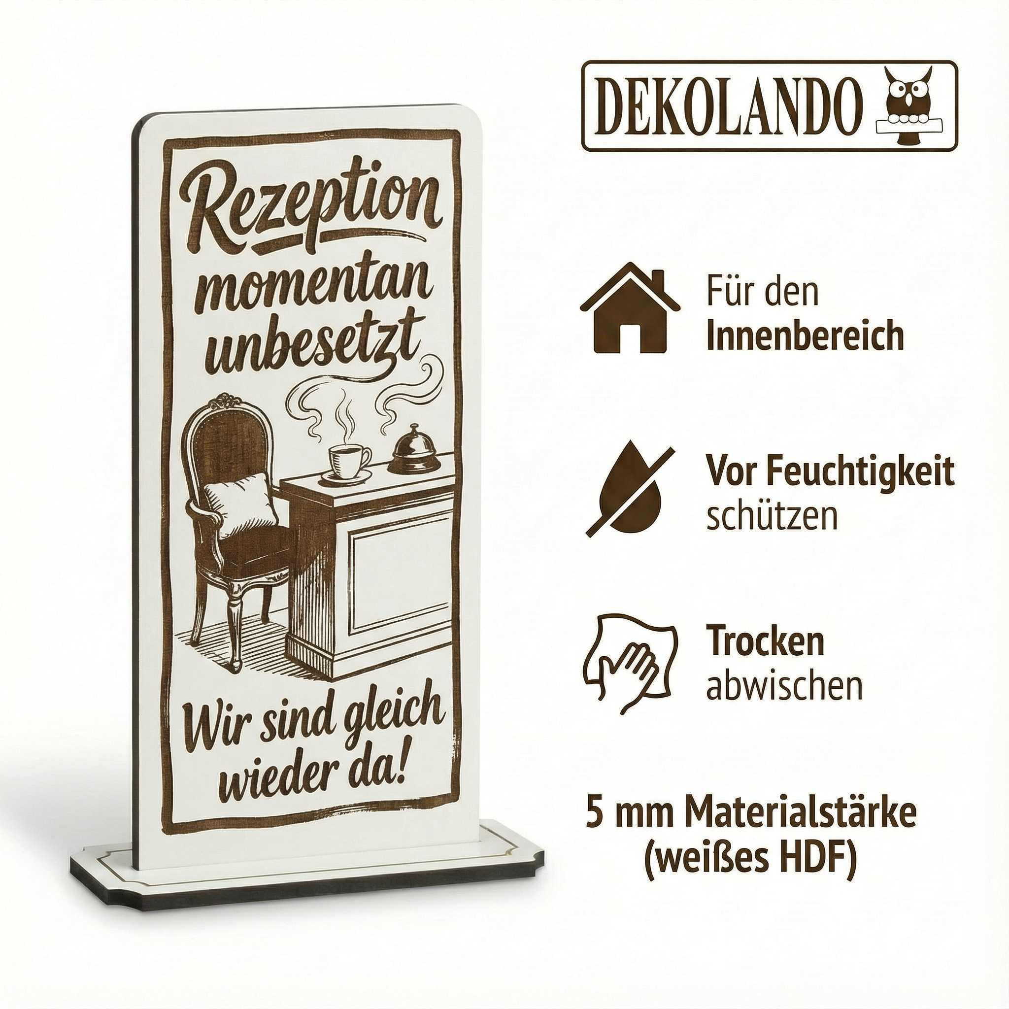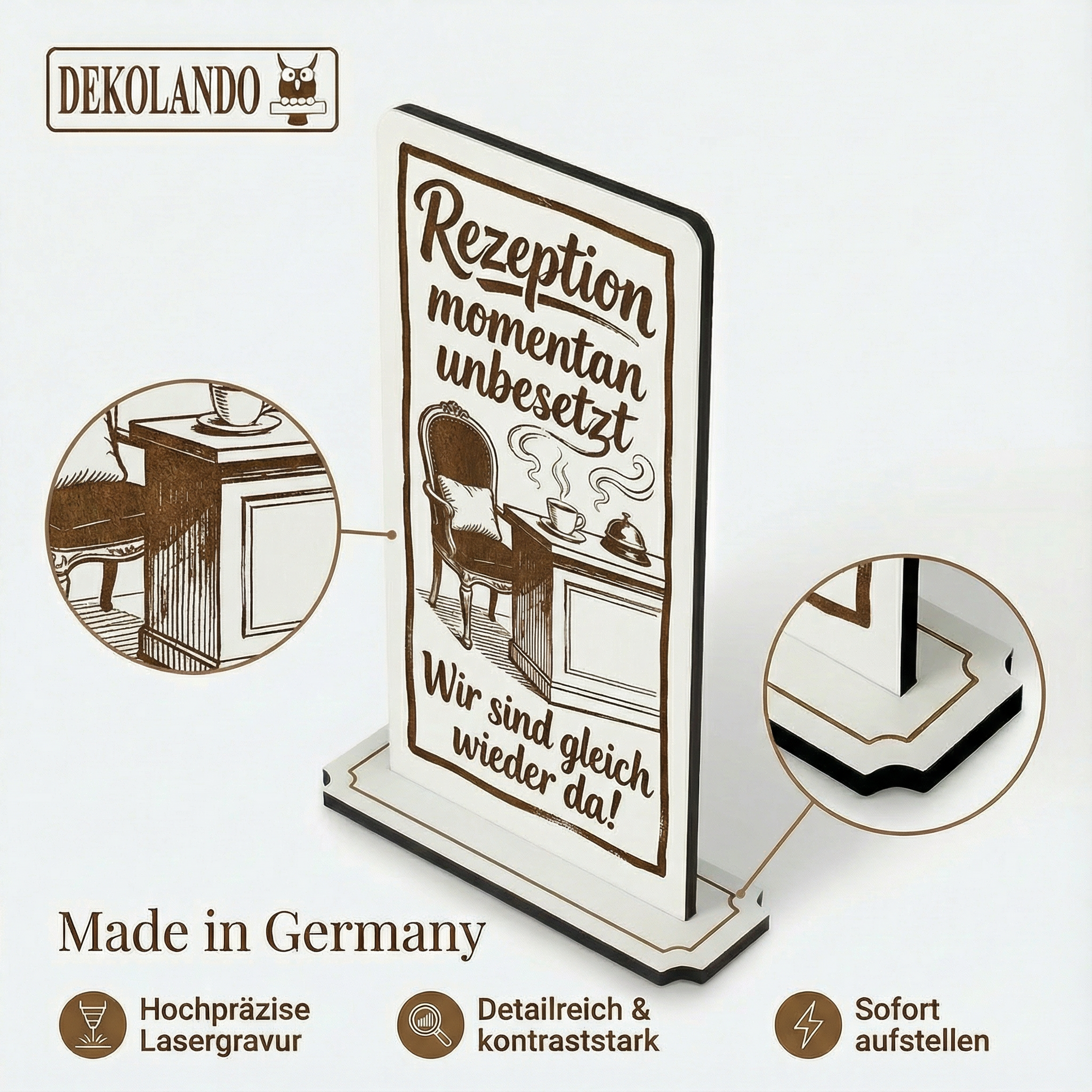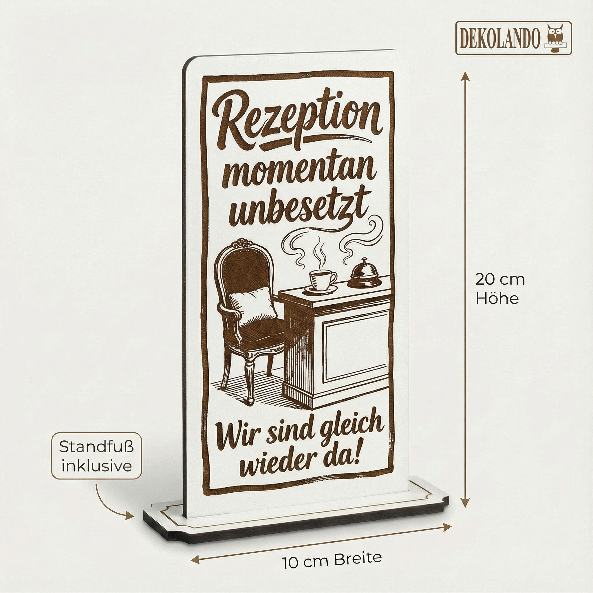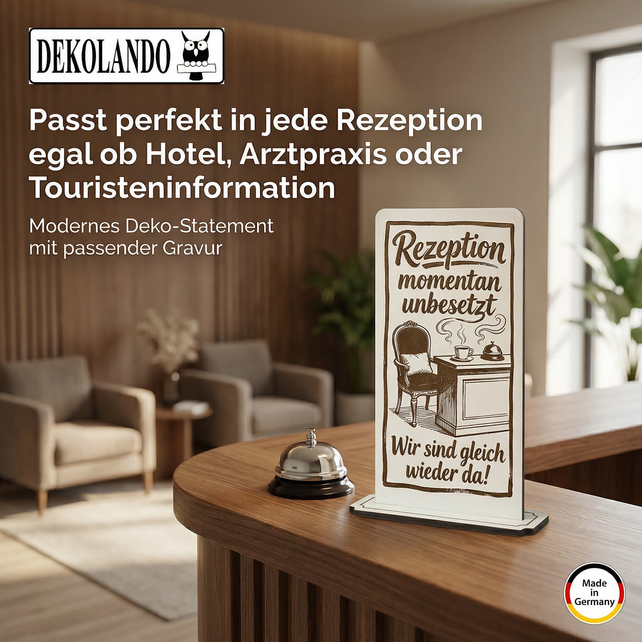 - MOTIV REZEPTION MOMENTAN NICHT BESETZT: Aufsteller Schild mit Gravur „Rezeption momentan nicht besetzt“ – ideal an Rezeption, Empfang oder Hotel-Frontdesk.
