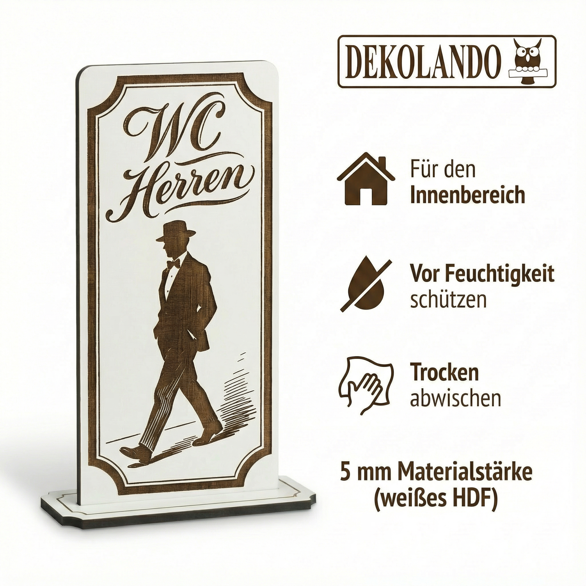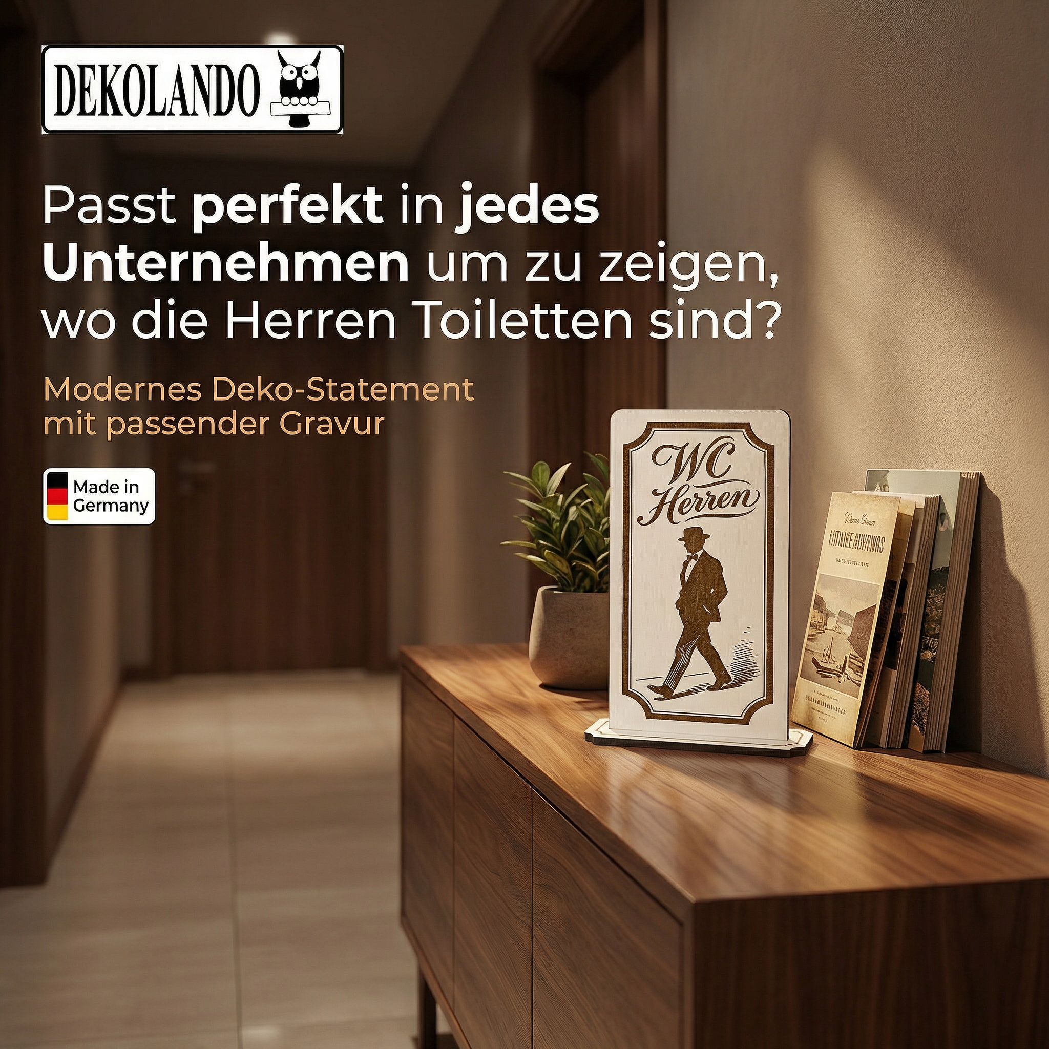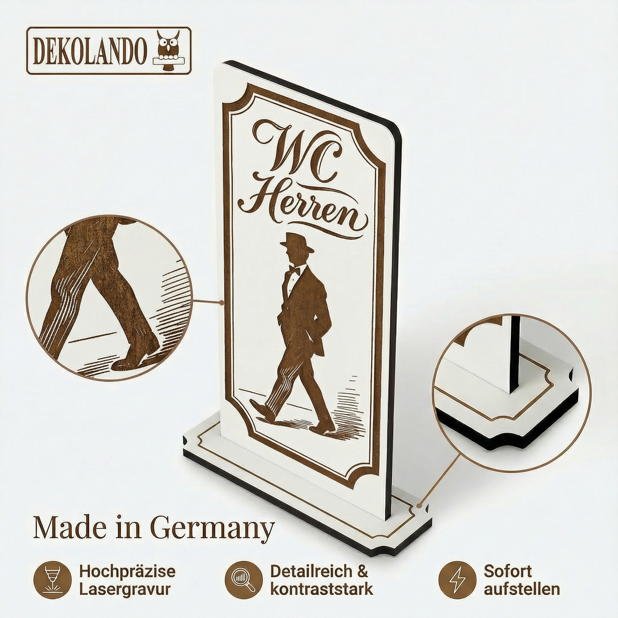 - MOTIV WC HERREN: Aufsteller Schild mit Gravur „WC Herren“ – gut sichtbar im Flur, Eingang, Gastro-Bereich oder WC-Leitsystem.