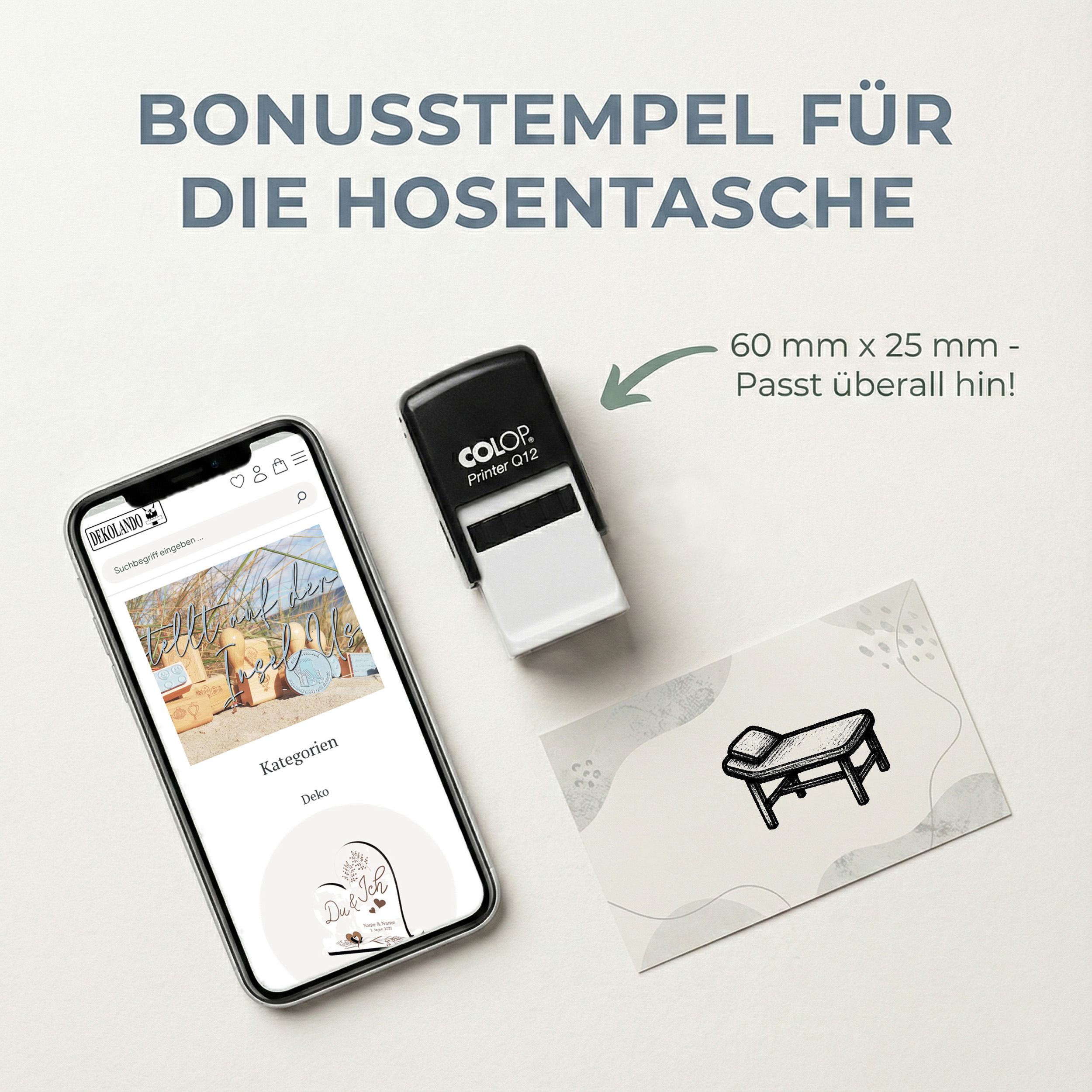 - Kompakter Stamper (60 × 25 × 25 mm) – robust, leicht & ideal für unterwegs; ideal für Gutscheine, Bonuskarte, Kundenkarte, Stempelkarte, Terminkarten, Kundenbindung & Rabattaktionen