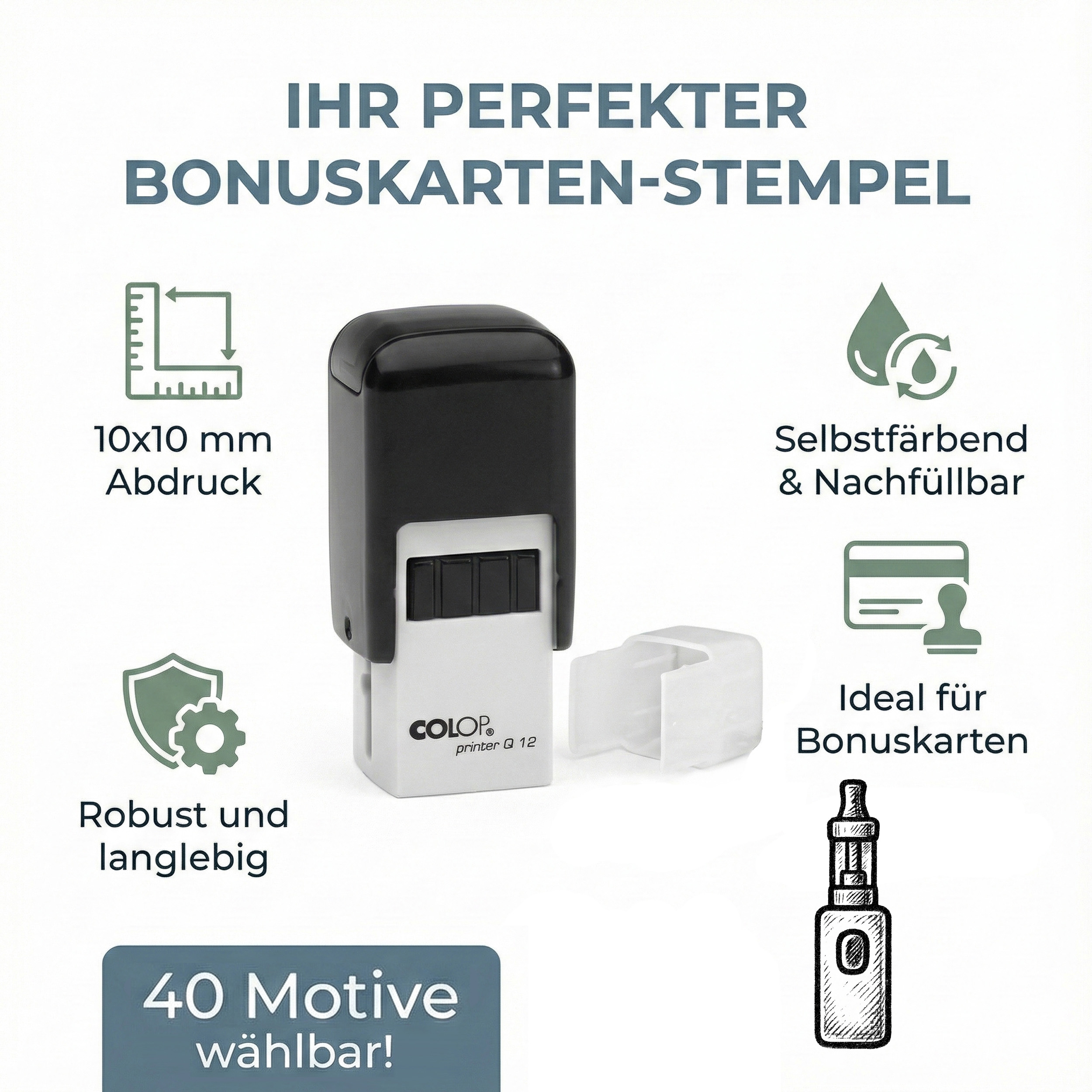 Bonusstempel Vape 10x10 mm – Bonuskartenstempel für Vape-Shop E-Zigarettenladen Dampfershop Liquid Store
