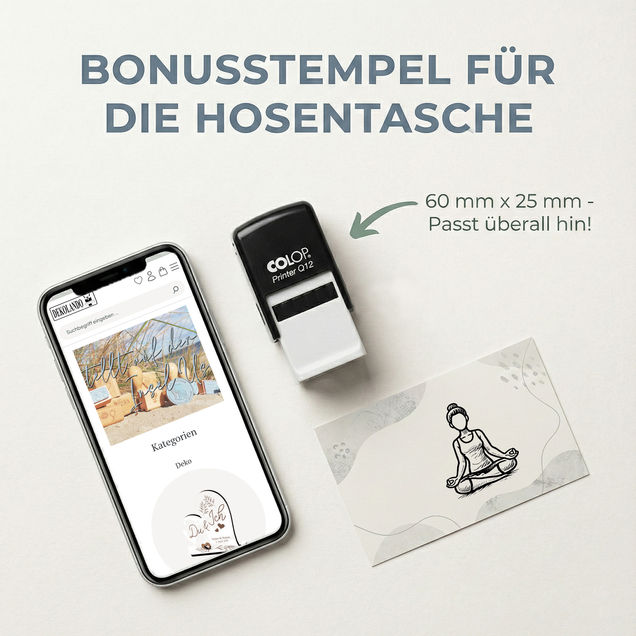 Bonusstempel Yoga Lotussitz 10x10 mm – ideal für Bonuskarte, Kundenkarte, Stempelkarte & Terminkarten im Yogastudio, Fitnessstudio, Meditationcenter, Entspannungsraum. Scharfer Rundstempel für klare, professionelle Abdrucke