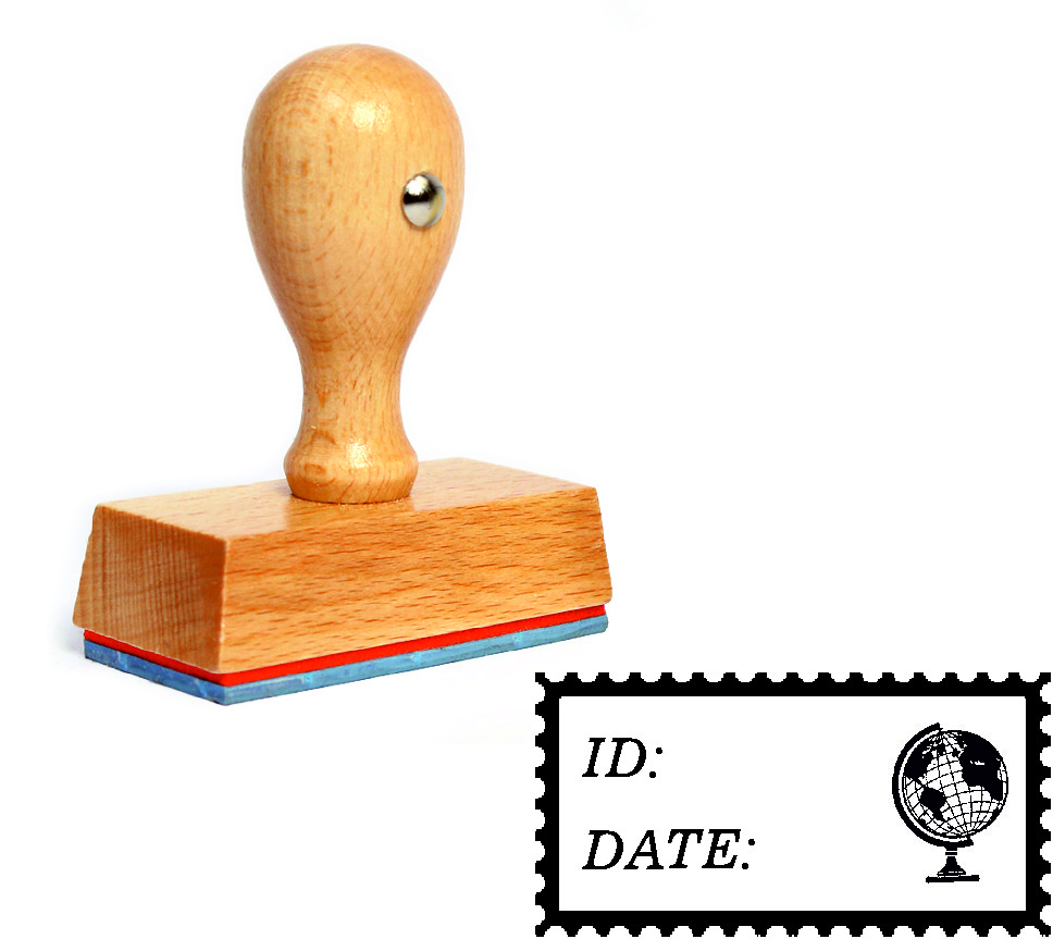Postcrossing Stempel - Platz für Datum und ID Postkarten Briefstempel Holzstempel Globus 40 x 20 mm
